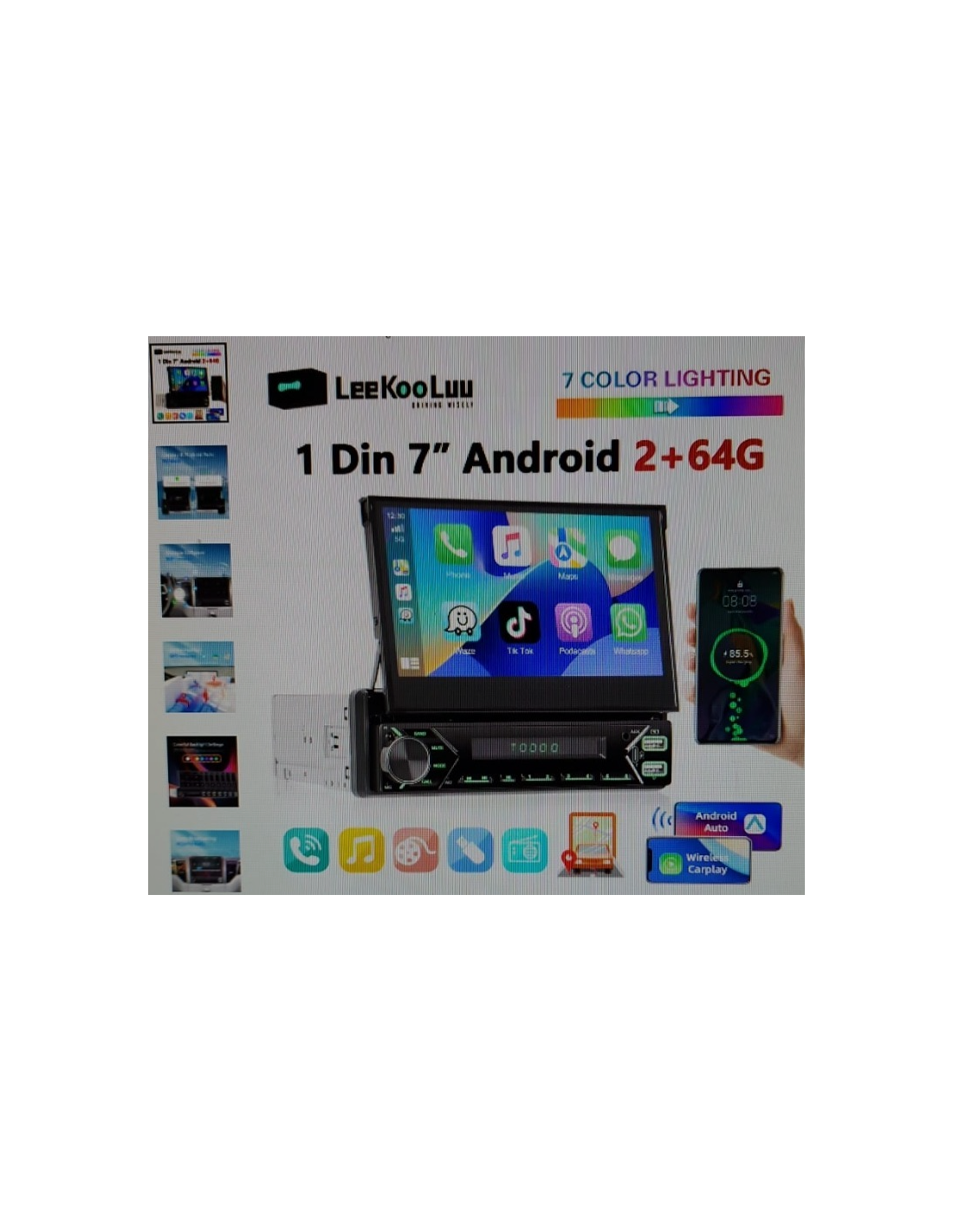 LeeKooLuu 7 "schermo retrattile manuale 2G + 64G Android 13 autoradio 1 Din lettore multimediale GPS Wireless Carplay Android Auto