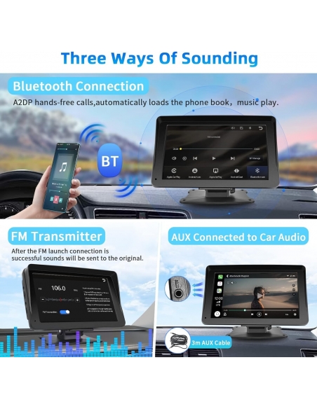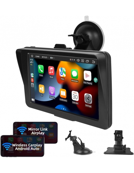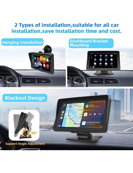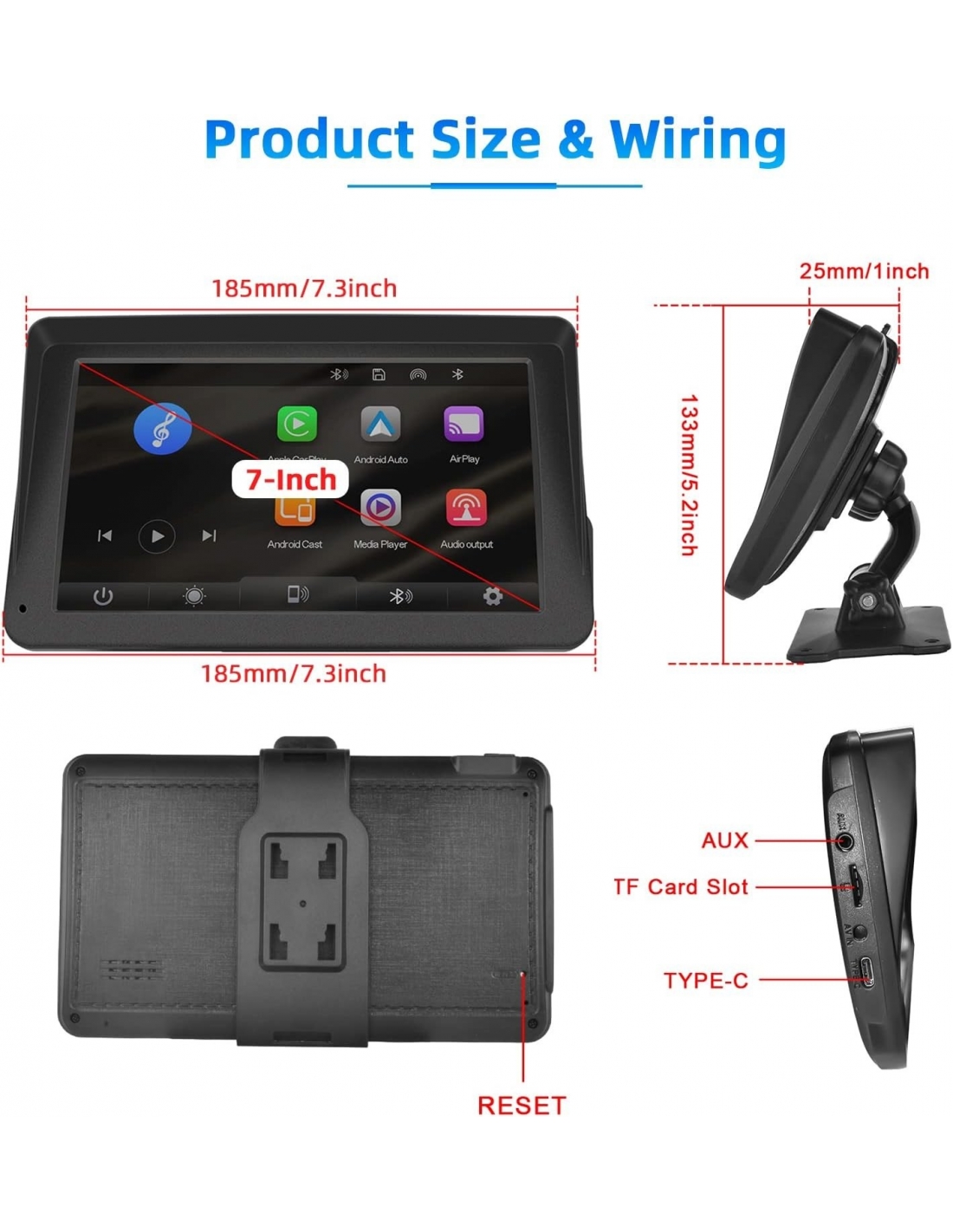 - [Installazione Semplice e Risparmio sui Costi] - Il kit include una staffa verticale e una staffa a ventosa, la radio Carplay da 7 pollici può essere fissata sul cruscotto utilizzando la staffa verticale o fissata sul parabrezza con una forte ventosa, plug and play, così puoi risparmiare tempo e costi di installazione.