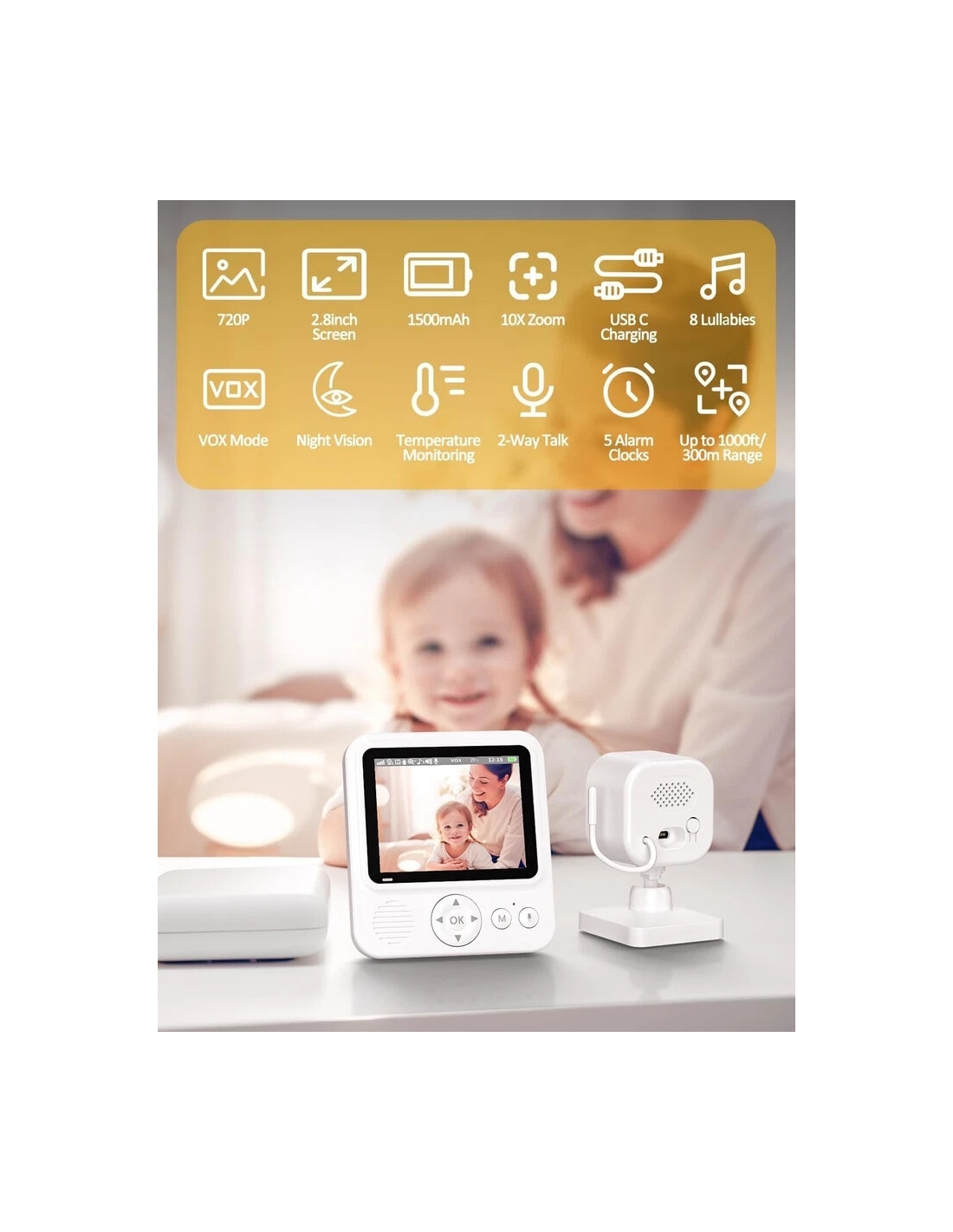OBVHNUA ABM900 Baby monitor 720P telecamera 2,8" VOX Zoom Visione notturna