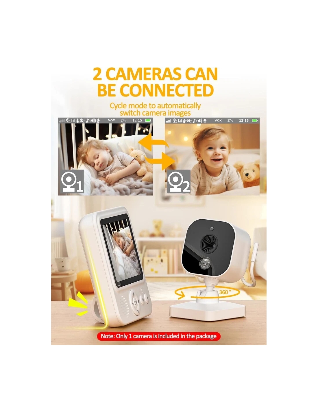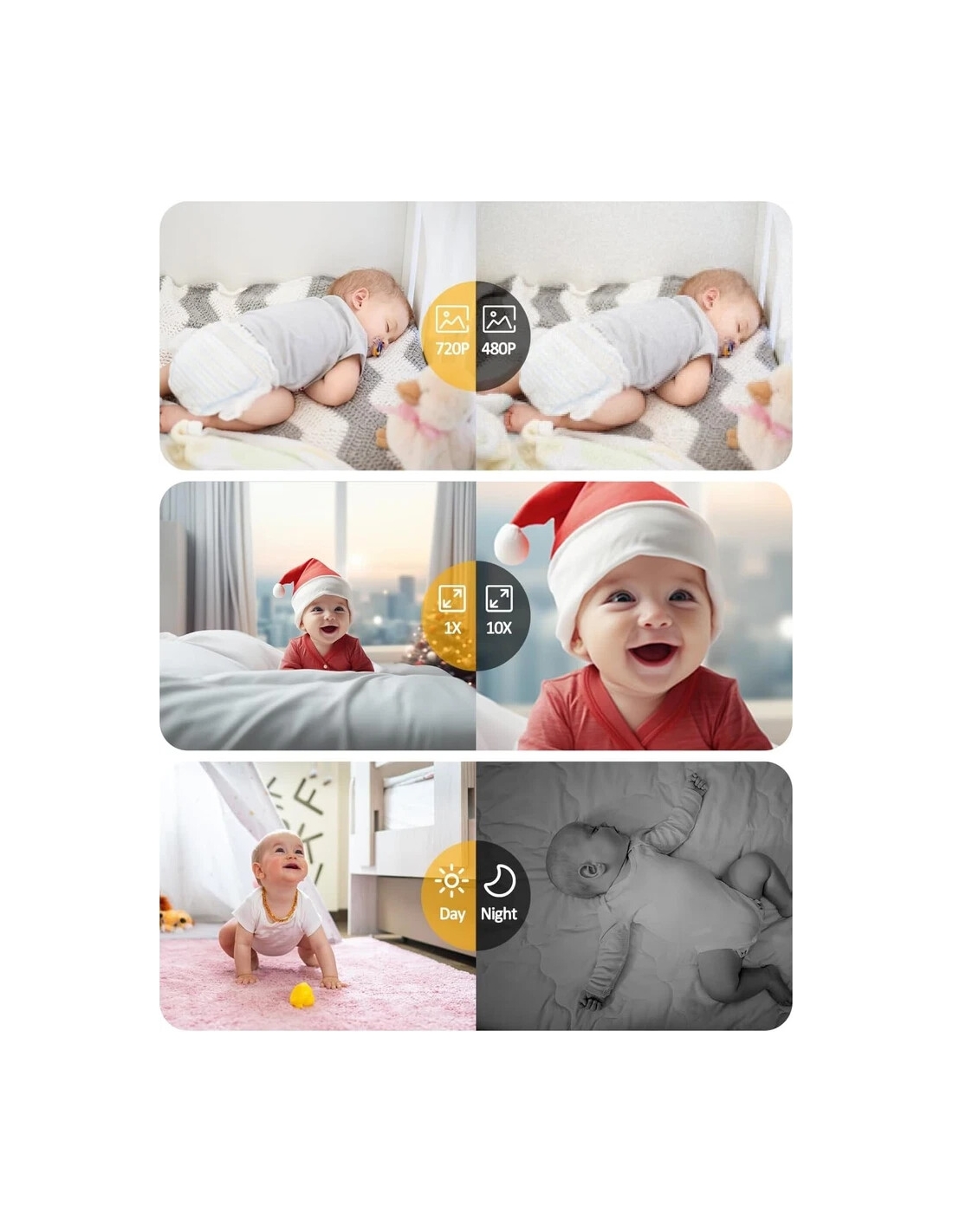 - SCHERMO HD: il baby monitor LCD da 2,8 pollici non solo ha uno schermo di dimensioni contenute, ma è anche dotato di funzioni di messa a fuoco automatica e ingrandimento, che consentono di visualizzare chiaramente ogni minimo movimento ed espressione del bambino. Allo stesso tempo, adotta la tecnologia FHSS a 2,4 GHz per ridurre efficacemente le interferenze e garantire una connessione sicura e affidabile tra genitori e bambini.