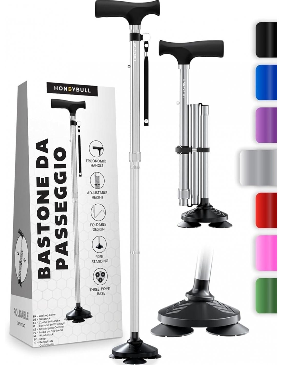 HONEYBULL Bastone da Passeggio per Uomo e Donna – Pieghevole, Regolabile, Compatto, Autoportante, Punta Snodata, Resistente e Robusto | Bastoni da Passeggio per Anziani e Adulti