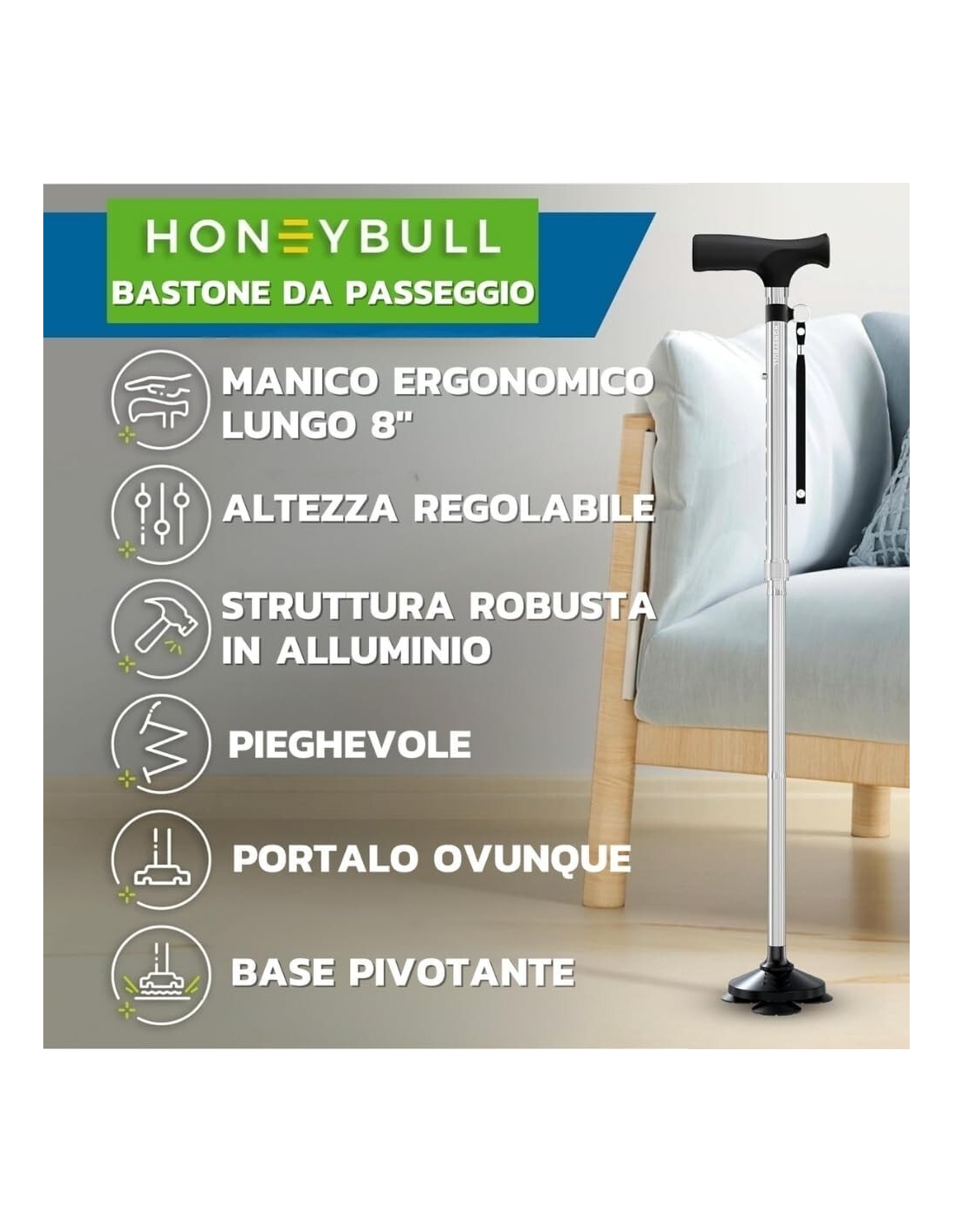 HONEYBULL Bastone da Passeggio per Uomo e Donna – Pieghevole Regolabile