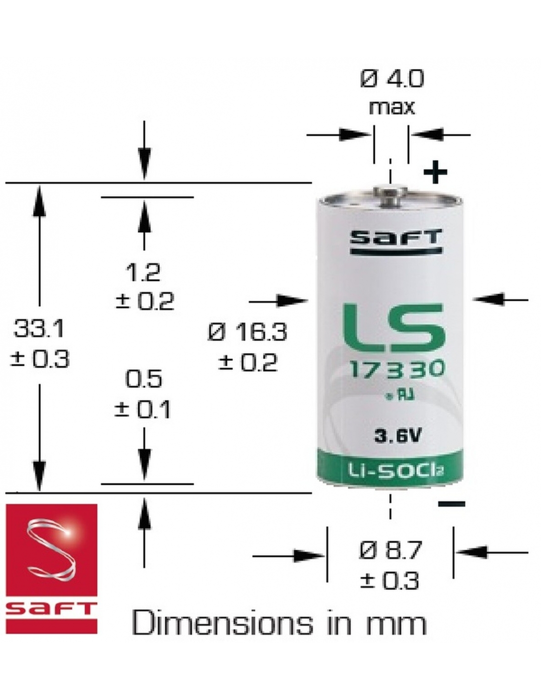 SAFT LS17330 CNA, batteria al Litio con connessione a filo assiale