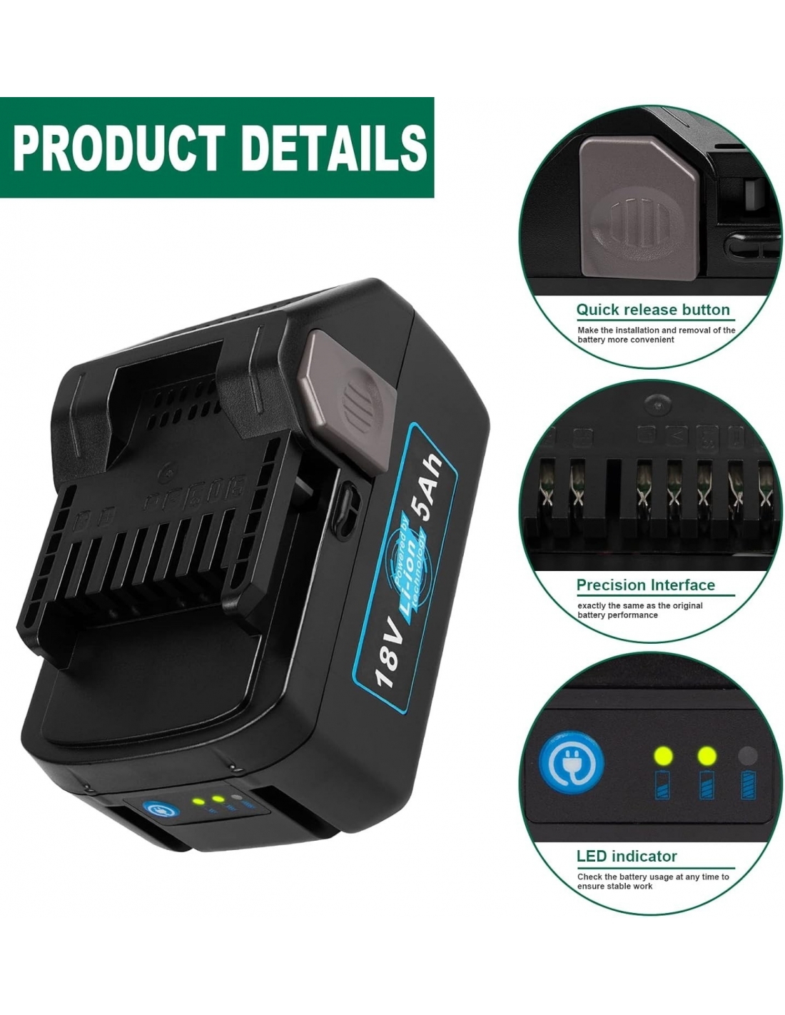 - Dettagli del prodotto: tipo di batteria: ioni di litio, tensione: 18 V, capacità: 5.0 Ah /5000 mAh.