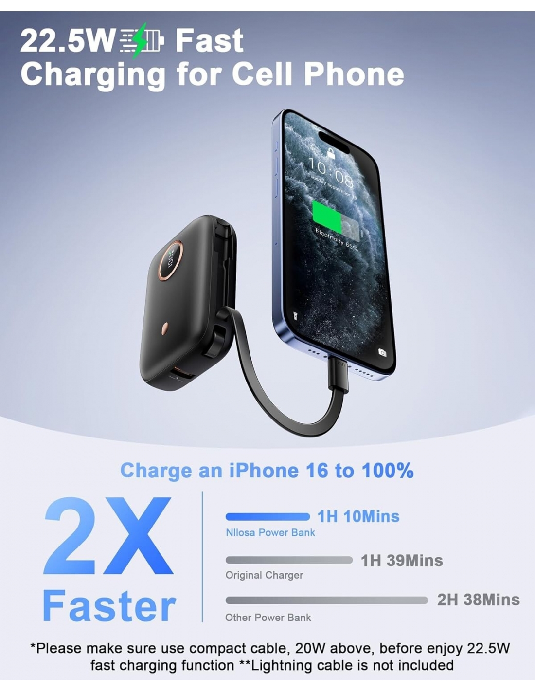 Nllosa Power Bank 10000mAh, Mini Caricatore Portatile