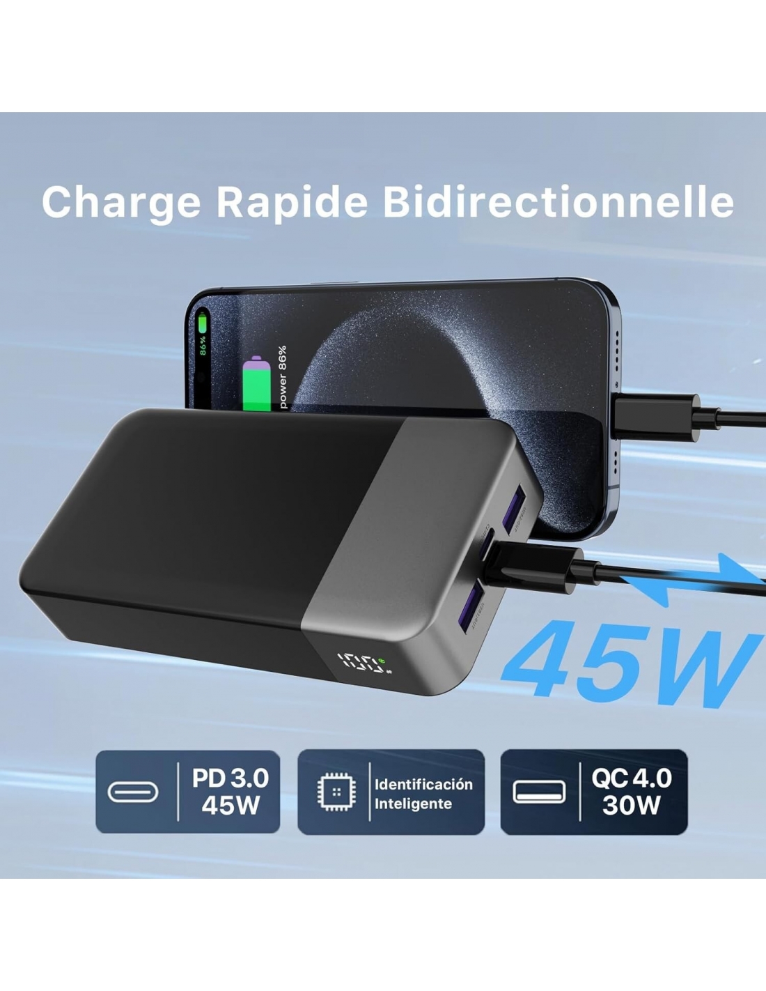 - 【Ricarica rapida bidirezionale】La porta USB C del caricabatterie portatile supporta una potenza di uscita massima di 45 W, supporta anche una potenza di ingresso massima di 45 W, questo caricabatterie portatile può essere completamente caricato in sole 2 ore