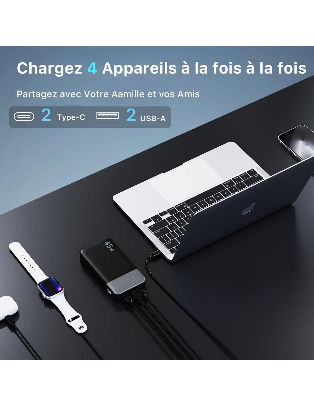 - 【Power Bank a ricarica super veloce】Caricabatterie portatile ad alta velocità con protocollo PD 3.0 e QC 4.0 avanzato, questo caricabatterie può caricare rapidamente un MacBook Pro da 14" dallo 0% al 47% e un iPhone 15 Pro dallo 0% al 60% in 30 minuti