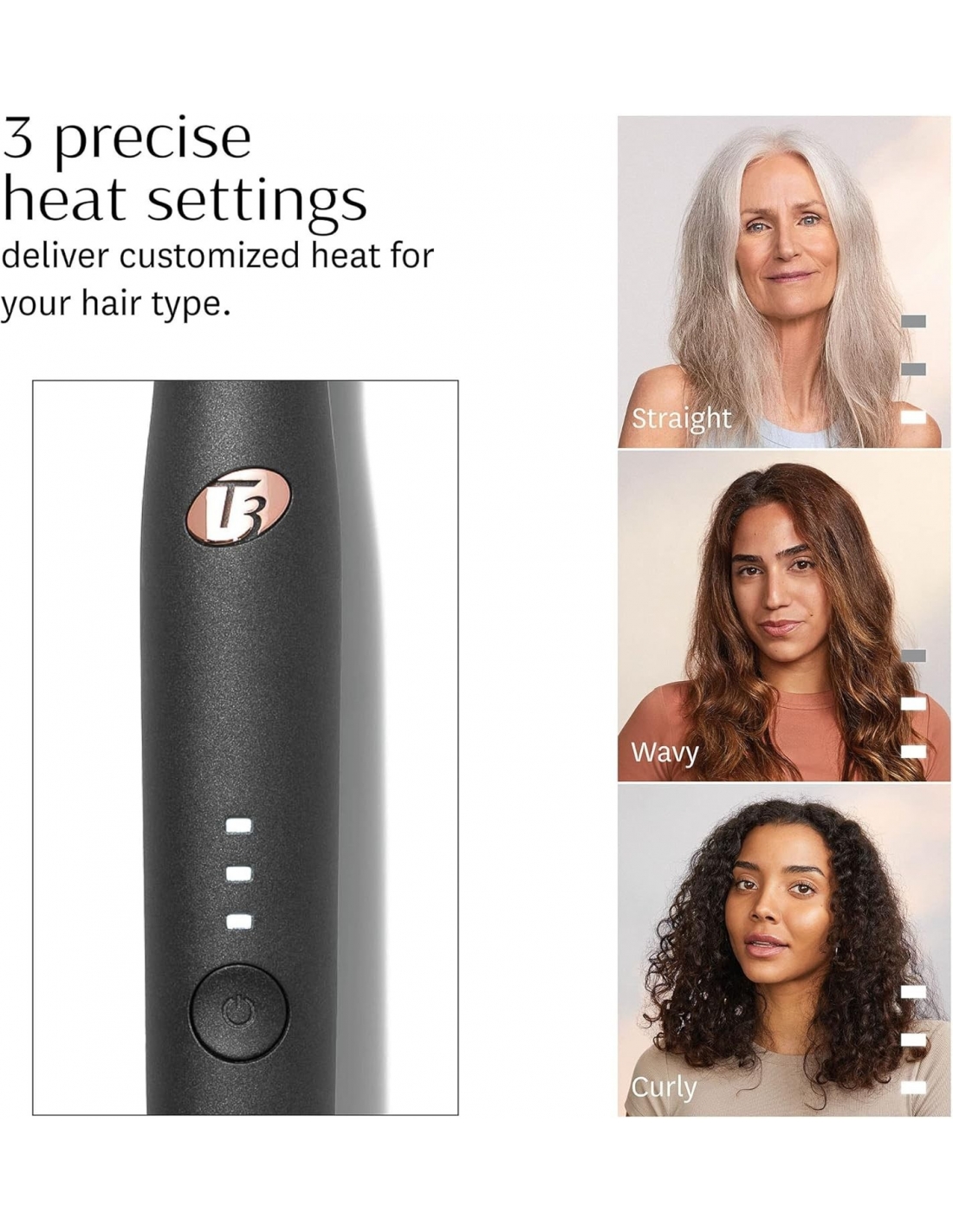 T3 Edge 77582 Spazzola lisciante e modellante riscaldata PrecisionEdge con superficie riscaldata estesa, tecnologia T3 Rapid HeatIQ, generatore di ioni e ceramica CeraGloss, nera
