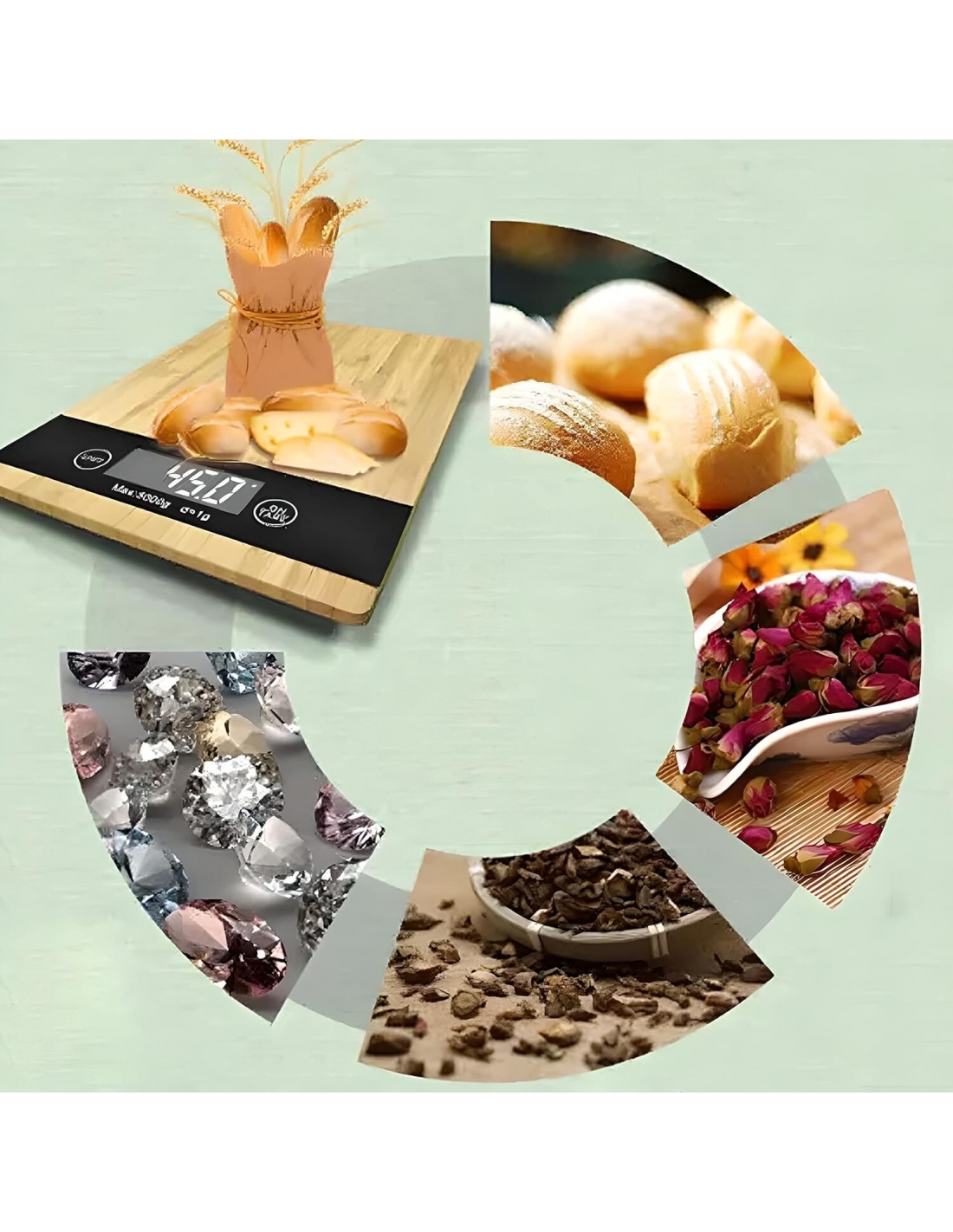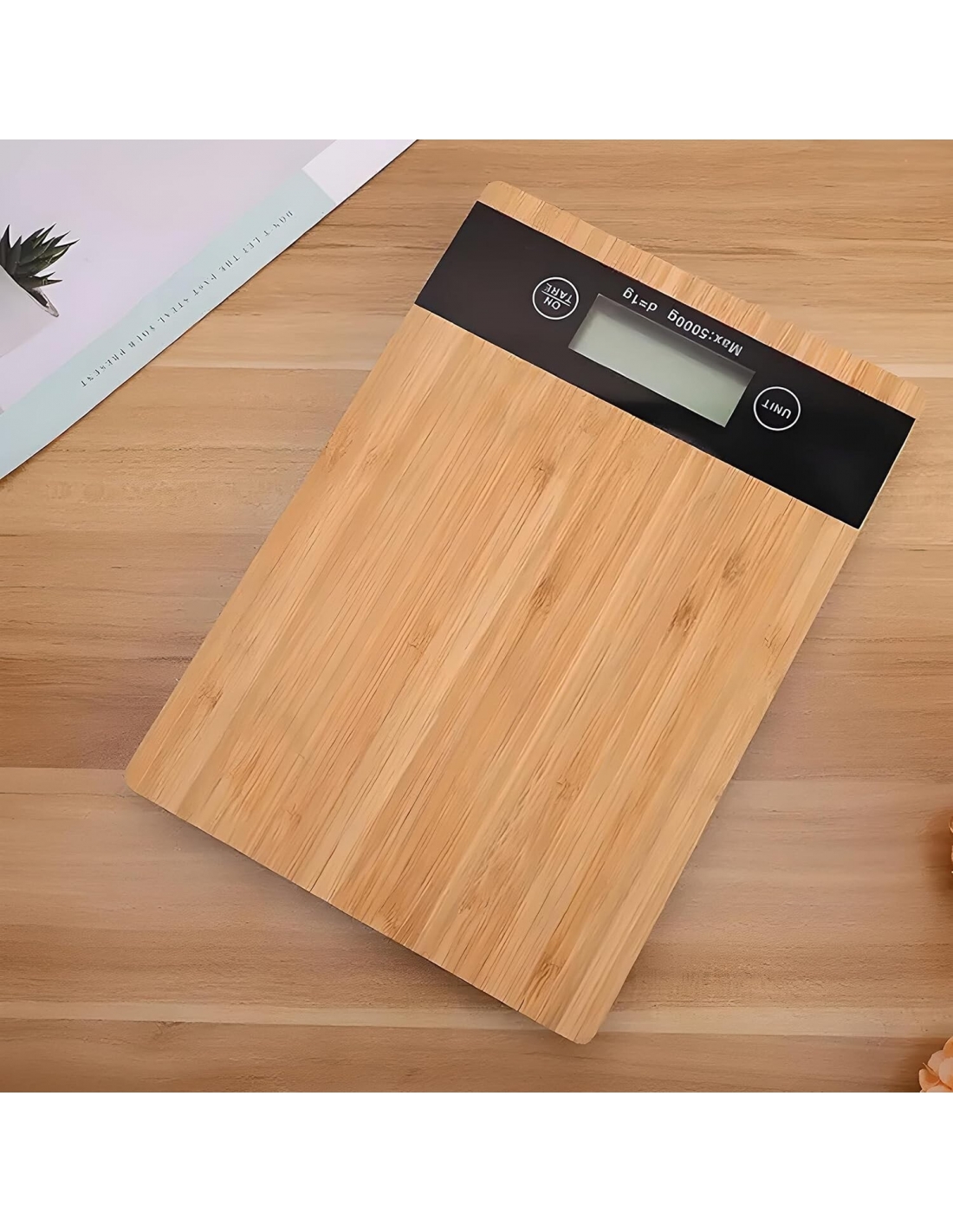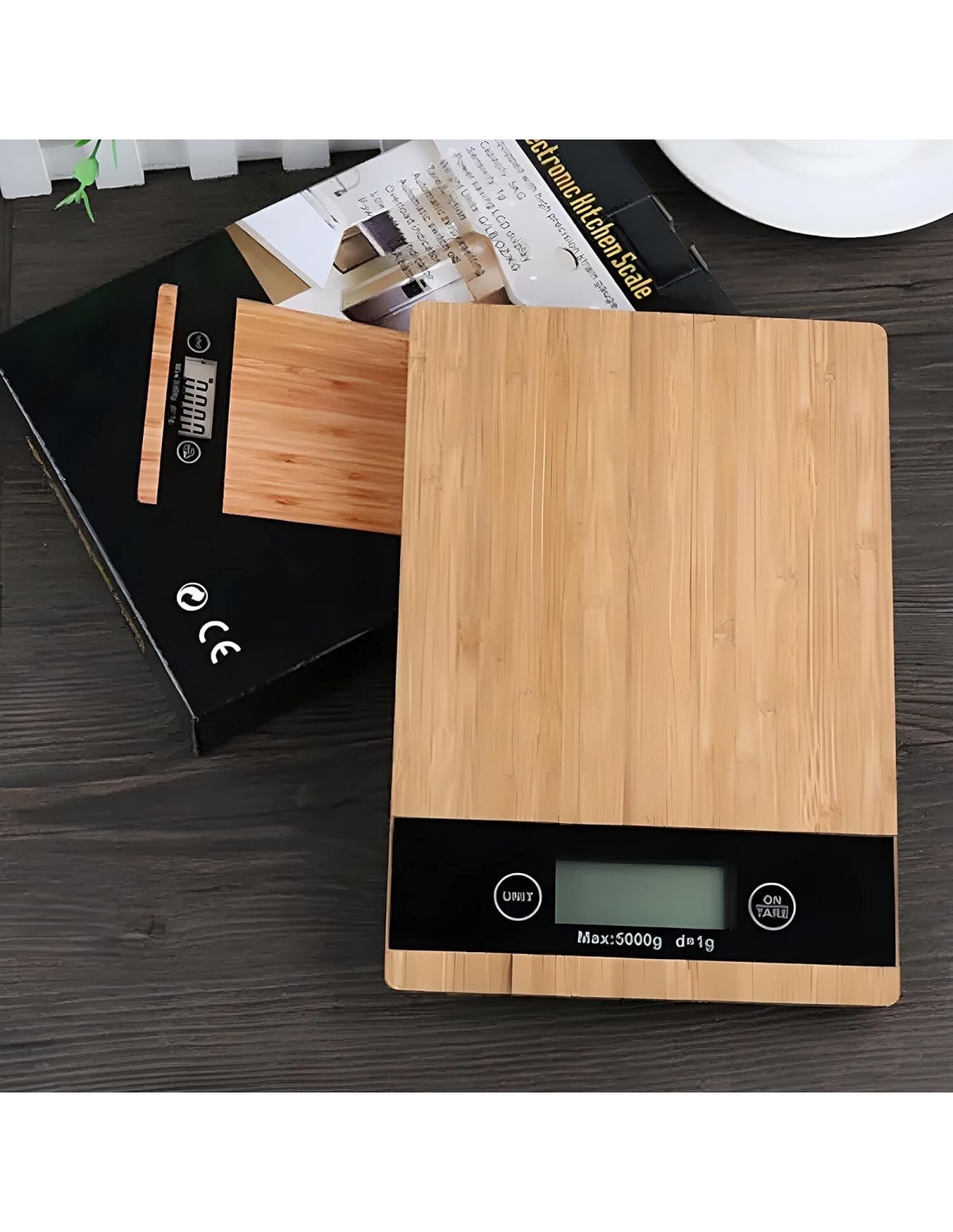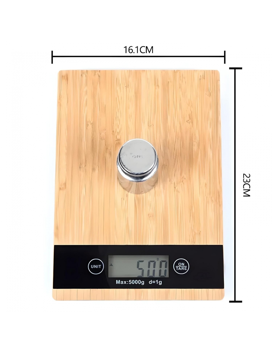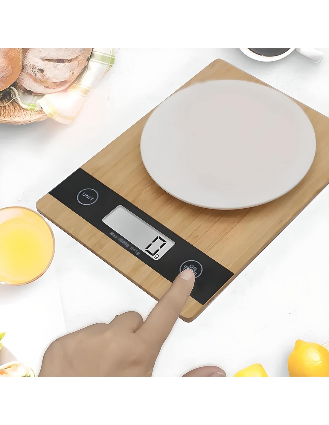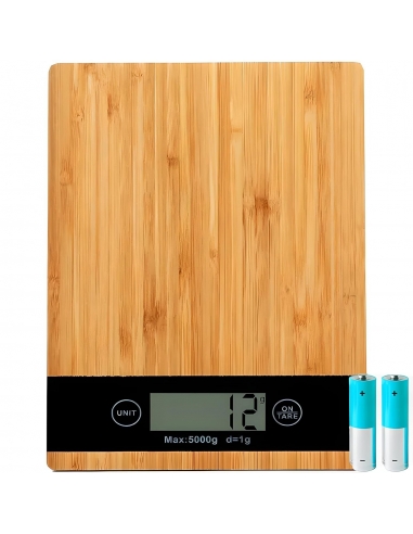 Bilancia digitale da cucina in bambù display LCD 5 kg sensore di contatto batteria 23 x 16,1 x 2,2 cm
