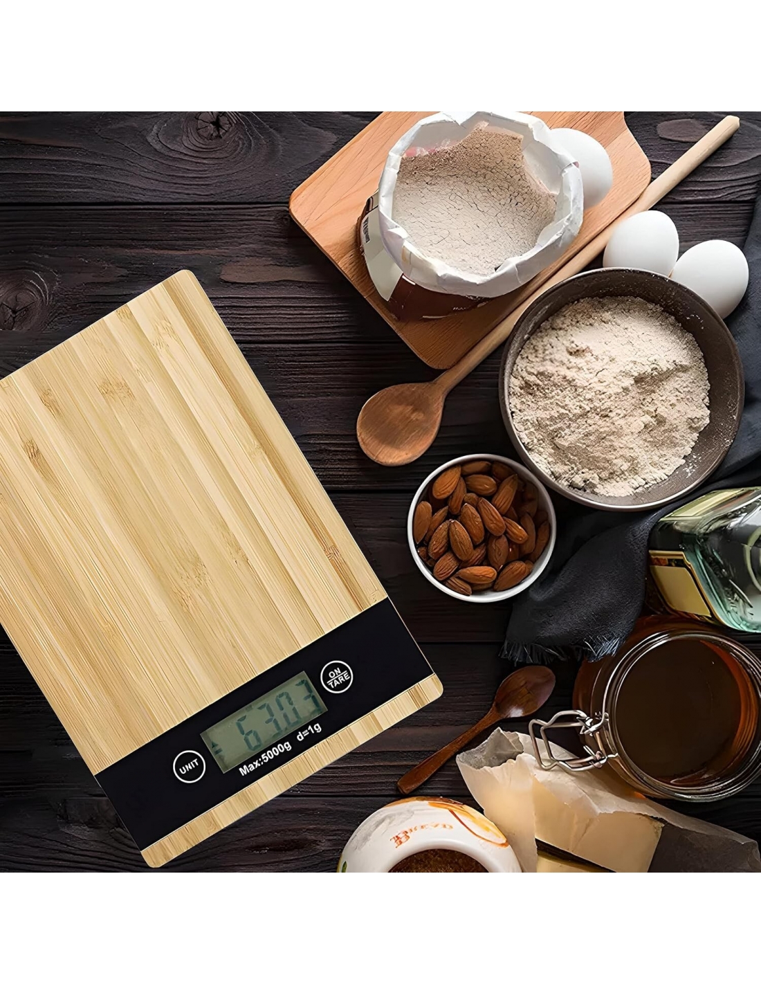 Bilancia digitale da cucina in bambù display LCD 5 kg sensore di contatto