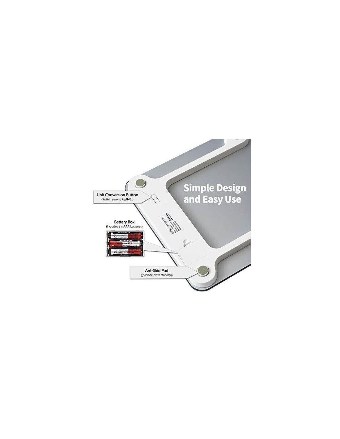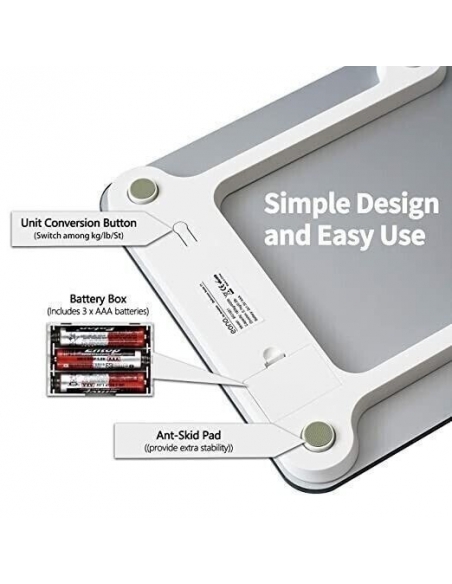 Tutte le funzionalità di cui hai bisogno e molto altro: La nostra bilancia da bagno si attiva automaticamente quando rileva un peso, si accende e spegne automaticamente, si calibra automaticamente e segnala sovraccarichi, quando la batteria è scarica e molto altro. Include tutte le funzionalità che una bilancia deve avere e molte altre.