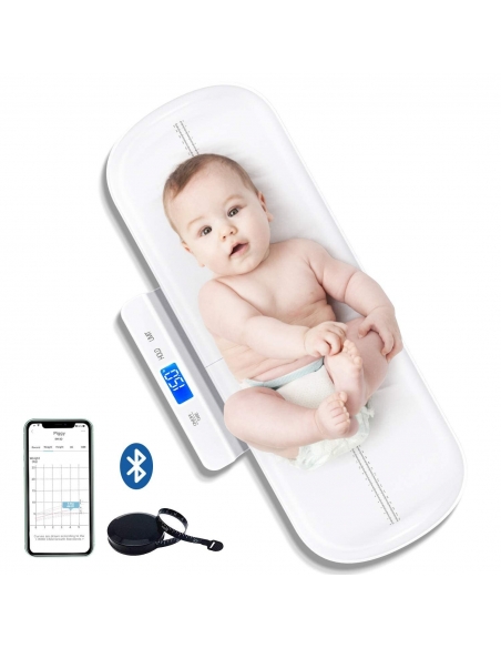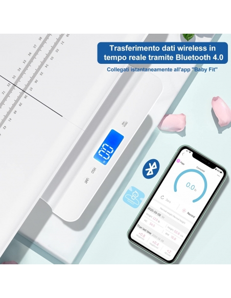 - App Bluetooth Gratis "Baby Fit": La nostra bilancia neonato Bluetooth è dotata di una app per dispositivi mobili che tiene traccia di tutti i dati che devi conoscere sulla crescita del tuo bambino, inclusi peso, altezza e andamento della crescita. Puoi connettere qualsiasi dispositivo alla nostra bilancia pesa neonati Bluetooth tramite il Bluetooth, senza bisogno di alcuno strumento