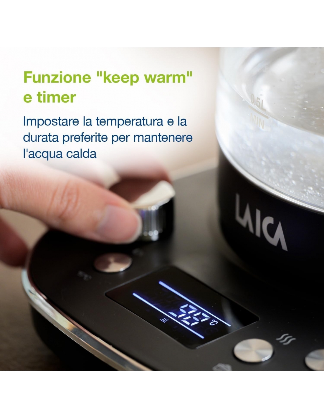 - FUNZIONE KEEP WARM E TIMER - Scegli la temperatura e la durata preferite per mantenere l'acqua calda, per assicurarti che rimanga sempre piacevolmente calda.