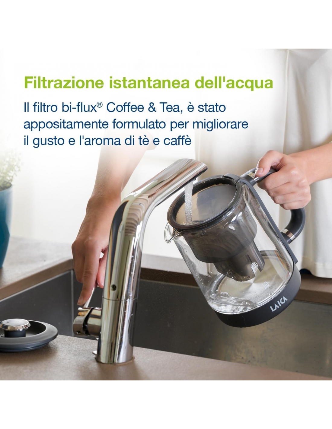 - RISPARMIA DENARO ED ENERGIA - Riscaldando a temperature precise, risparmi energia rispetto ai bollitori tradizionali e utilizzando le cartucce filtranti Bi-flux contribuisci a ridurre il consumo di bottiglie di plastica monouso.