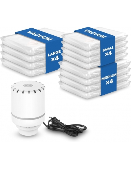 Vacbird Sacchetti Sottovuoto Vestiti con Pompa Elettrica, Confezione da 12 (4 Grandi, 4 Medi, 4 Piccoli), Sacchetti Salvaspazio per Vestiti, Coperte, Cuscini, Viaggi, Lenzuola, Giocattoli di Peluche