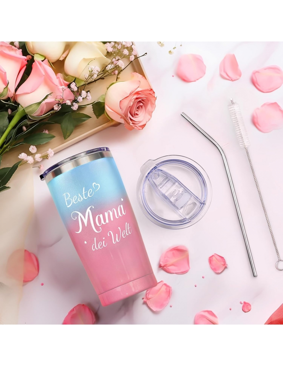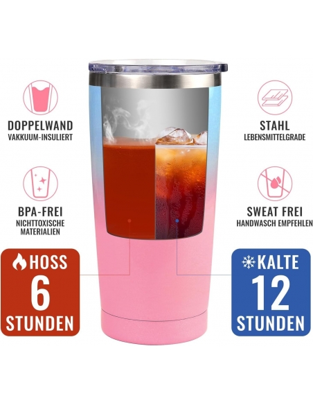 - Regalo per la Festa della Mamma: Questo regalo per la mamma, realizzato in acciaio inossidabile 18/8, è infrangibile e progettato per durare a lungo. È altamente resistente alla ruggine e alle forature. Il coperchio trasparente, privo di BPA, si chiude ermeticamente, tiene sotto controllo le fuoriuscite e consente di vedere l'interno. Su ogni coperchio è presente un foro per bere, attraverso il quale è possibile bere direttamente o con una cannuccia. Leggero e facile da usare. Facile da trasportare, si adatta ai portabicchieri dell'auto.