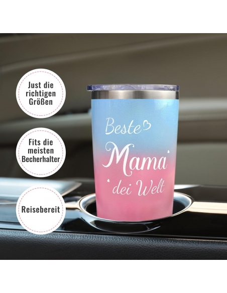 - Il regalo perfetto per la mamma: la nostra tazza termica da caffè da asporto ha una capacità di 560 ml. L'isolamento sottovuoto a doppia parete mantiene le tue bevande preferite calde per oltre 6 ore e fredde per oltre 12 ore in un ambiente a temperatura normale. Ideale per tutti i tipi di bevande. Con la scritta "Best Mum Ever", è un orgoglioso promemoria di quanto le ami ogni volta che usa la tazza, al lavoro, durante lo sport o in altre attività quotidiane.
