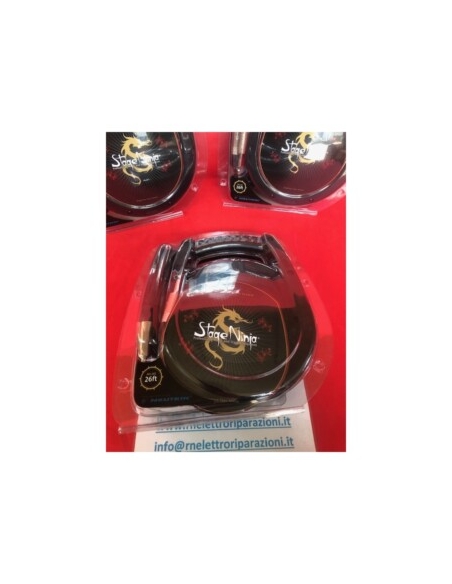 Cavo Jack-Jack 8 metri STAGE NINJA INS 26S, connettori Neutrik Jack mono 6,3mm, chitarra, con cavo retraibile e box plastica