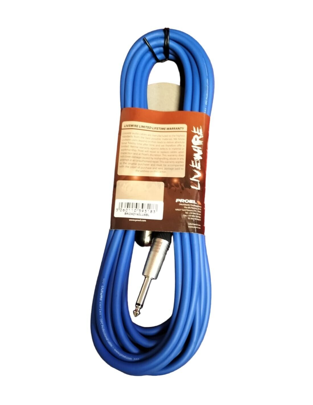 Proel Livewire BROAD140LU6BL Cavo professionale MONO JACK-JACK maschio Angolato 6 mt. BLU