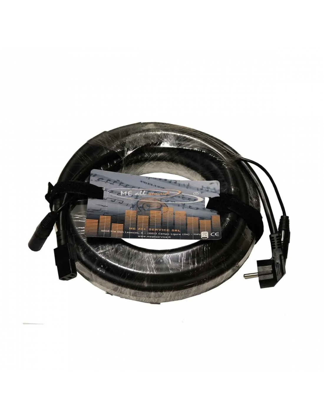 Cavo assemblato professionale con una spina volante XLR 3 poli, una spina volante SCHUKO 16A, una presa volante 3 poli e una presa volante standard EC (VDE)