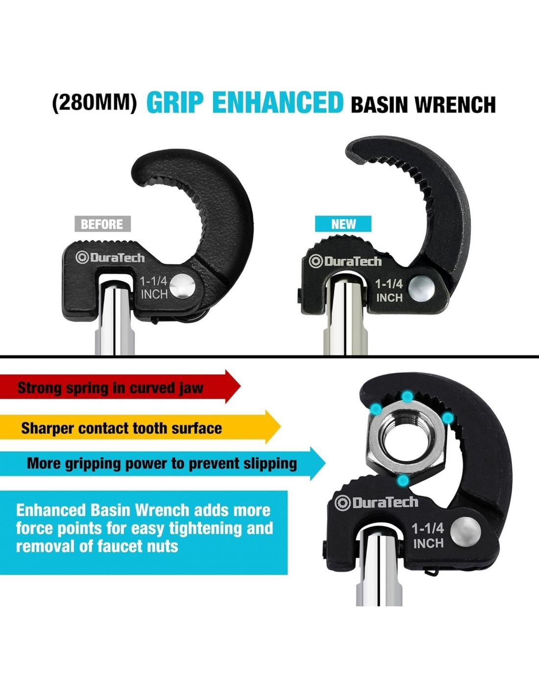 DURATECH Chiave per dadi da rubinetto regolabile 280MM, con capacità da 10MM a 32MM per il fissaggio di dadi posteriori e tappi sotto il lavello