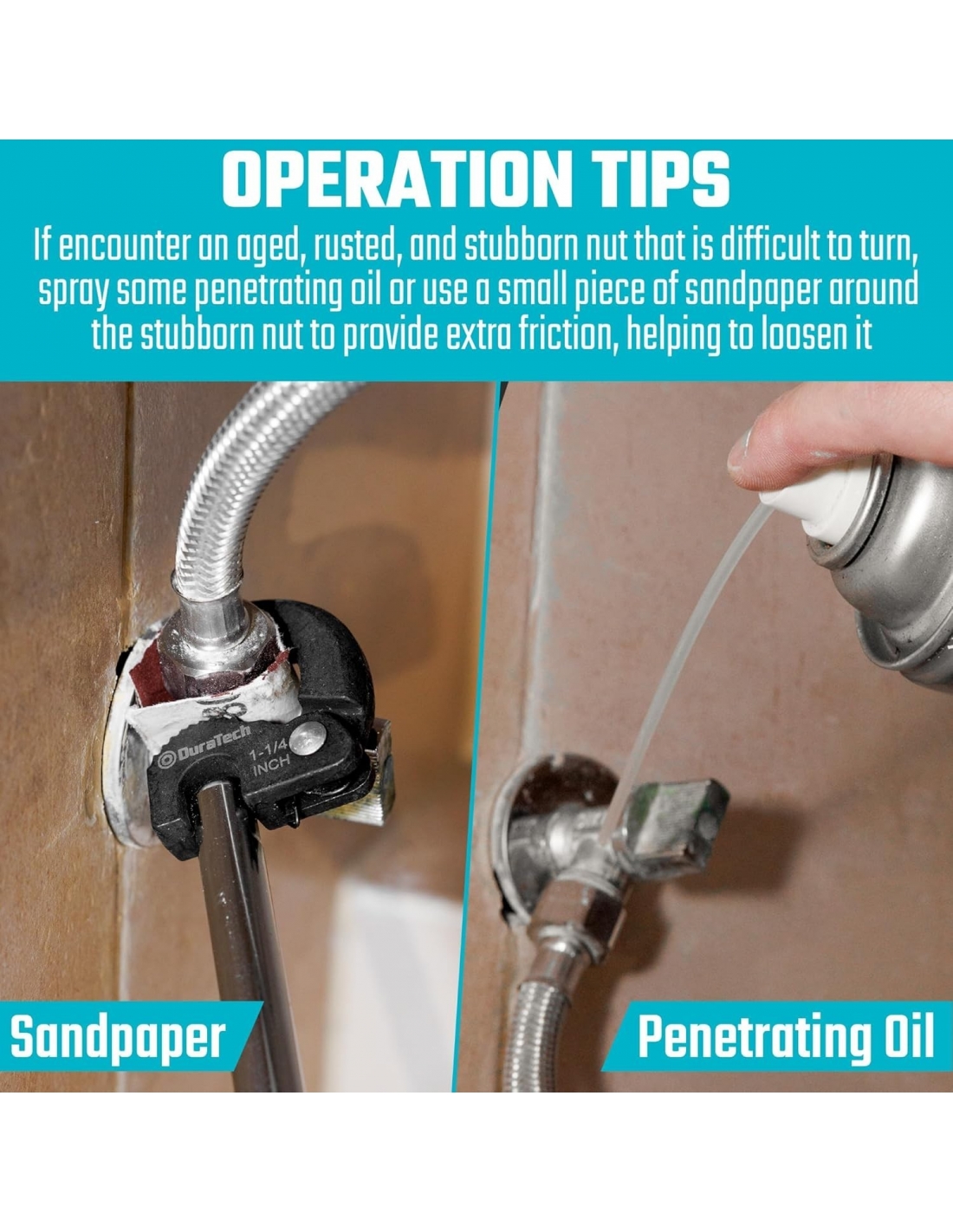 - La testa girevole 180 mantiene la sua posizione in qualsiasi angolo per accedere a dadi difficili da raggiungere. È dotato di una ganascia a molla che afferra saldamente e rimuove facilmente i dadi del rubinetto bloccati.