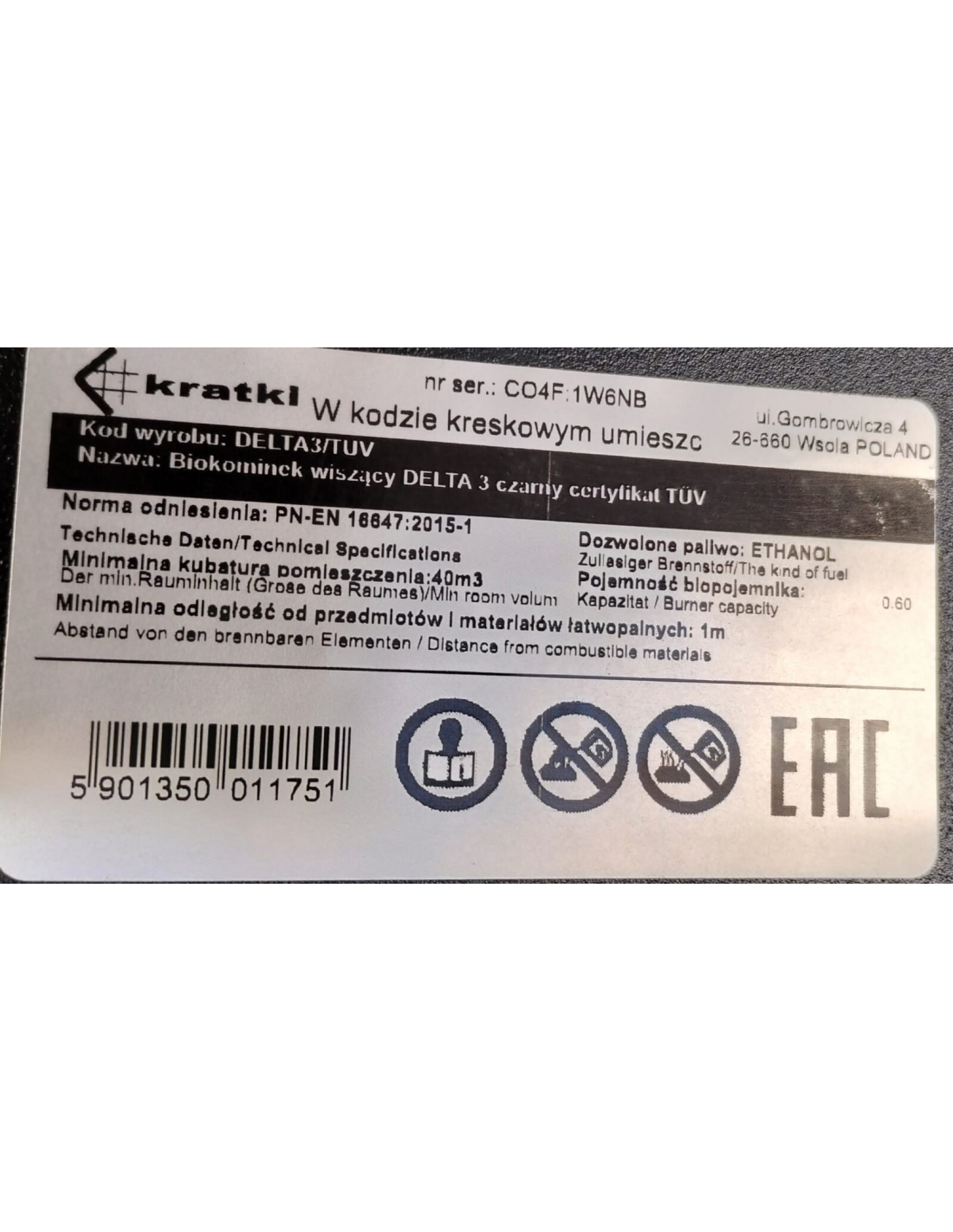 Il processo di produzione dei biocamini è monitorato da TÜV Rheinland Polonia - il biocamino ha un certificato di sicurezza TÜV tedesco. Il contenitore certificato TÜV è dotato di una camera speciale aggiuntiva che impedisce la fuoriuscita del carburante in caso di traboccamento accidentale. Inoltre, è dotato di un indicatore del livello massimo di carburante. La presenza di un inserto assorbente al centro del contenitore riduce il consumo di carburante e protegge dalla fuoriuscita di biocarburante dovuta all'inclinazione dell'apparecchio.