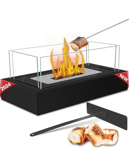 BIAOQINBO 2024 Nuovo Camino da Tavolo, Caminetto per Interni ed Esterni, Rettangolo Camino a con Vetro a 4 Lati, Camino Portatile Come Regalo o Decorazione