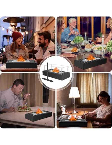 - 🔥𝐍𝐔𝐎𝐕𝐎 𝐅𝐔𝐎𝐂𝐎 𝐃𝐀 𝐓𝐀𝐕𝐎𝐋𝐎: Il nostro camino da tavolo è a 4 lati in vetro, in modo da poter godere della fiammata emozionante del nostro camino da tavolo all'interno e all'esterno più a lungo indisturbato.