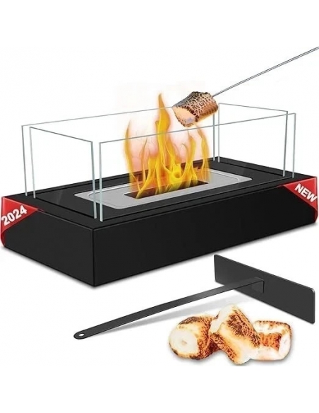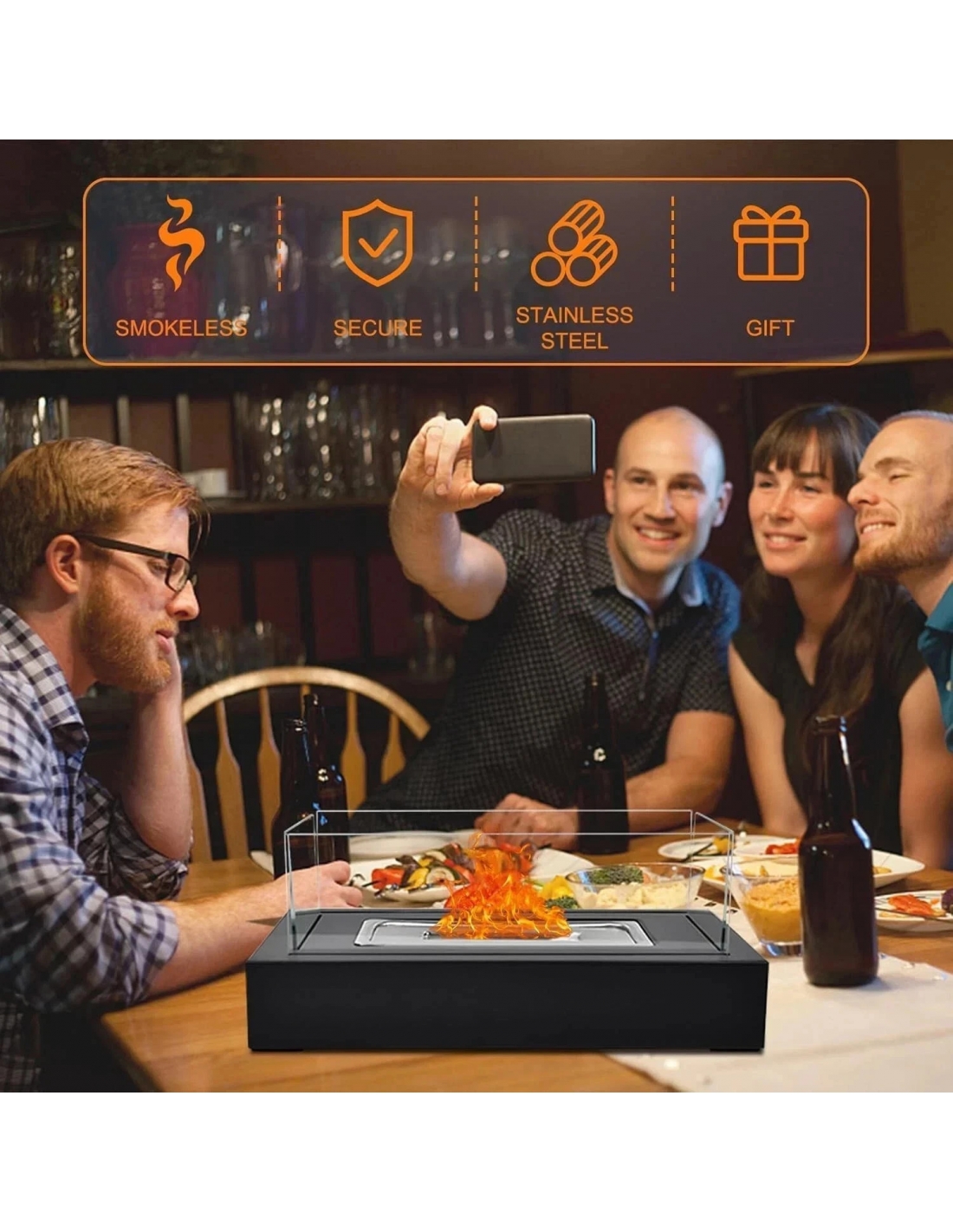 Nuovo Camino da Tavolo, Caminetto per Interni ed Esterni, Rettangolo Camino a con Vetro a 4 Lati, Camino Portatile Come Regalo o Decorazione