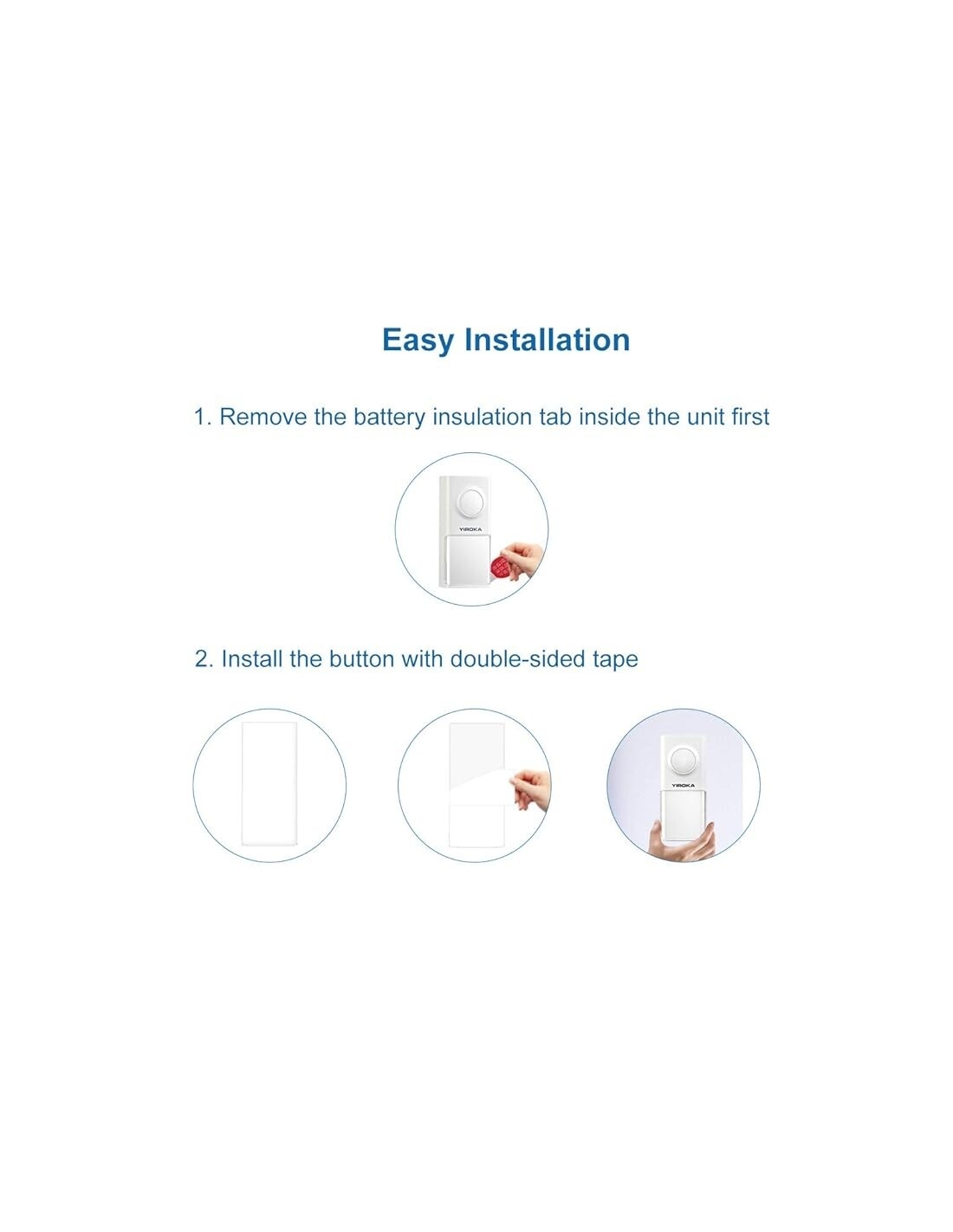 FACILE INSTALLAZIONE: il campanello wireless può essere facilmente installato ovunque con un adesivo biadesivo. Ideale per porte d'ingresso, scuole, magazzini, camerette, ecc.