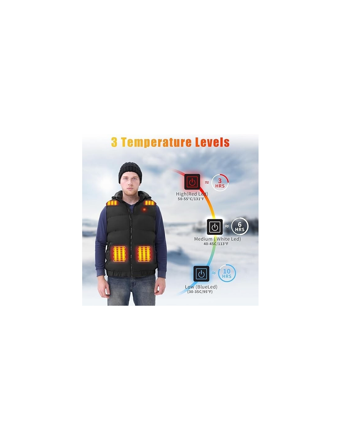 Rrtizan XL Gilet Riscaldato Uomo Power Bank 3 Livelli di Temperatura Fogli Termici Fodera in Maglia Giacca Senza Maniche Lavabile