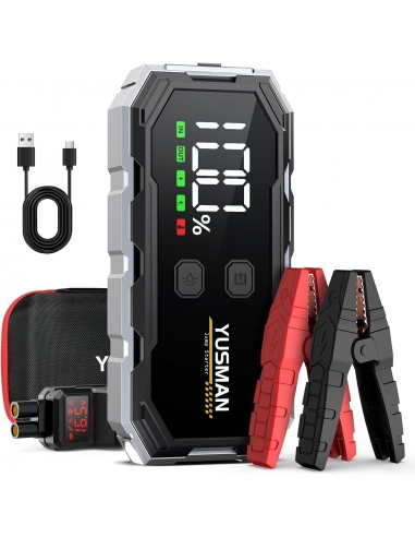 - YUSMAN L'avviatore portatile per la batteria dotato di una corrente massima di 4000 A e una grande capacità di 12800 mAh, starter batteria auto Può essere avviato rapidamente veicoli a 12V (motore a gas da 7L o diesel da 5.5L), avviatore batteria auto Adatto per auto, camion, motociclette, moto d'acqua, tosaerba, yacht, pick-up, motoslitte, ecc. avviatore auto Funziona in modo sicuro anche in ambienti estremi (-20℃~+60℃), quindi non dovrete più preoccuparvi di scaricare la batteria dell'auto nel freddo inverno o nel caldo estivo.