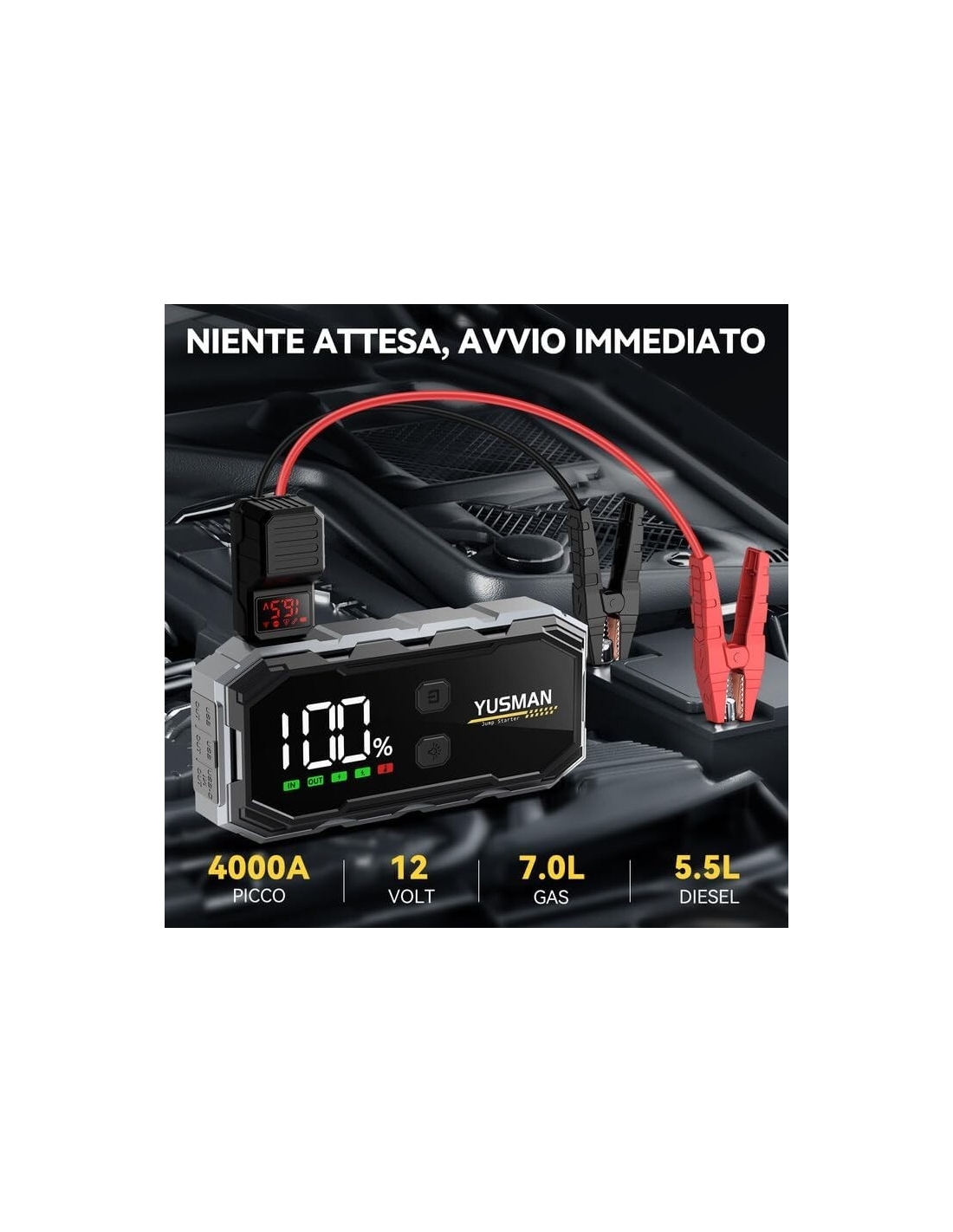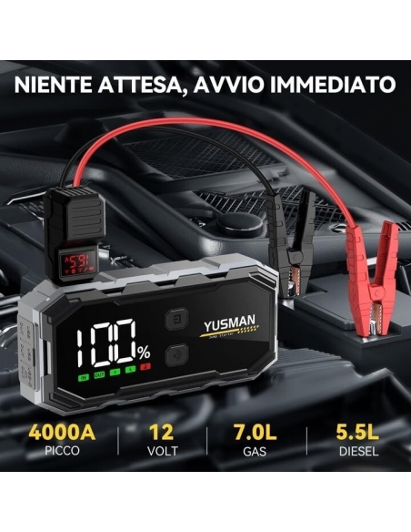 YUSMAN Booster Starter Avviamento Auto 4000A Portatile Avviatore 12V Emergenza