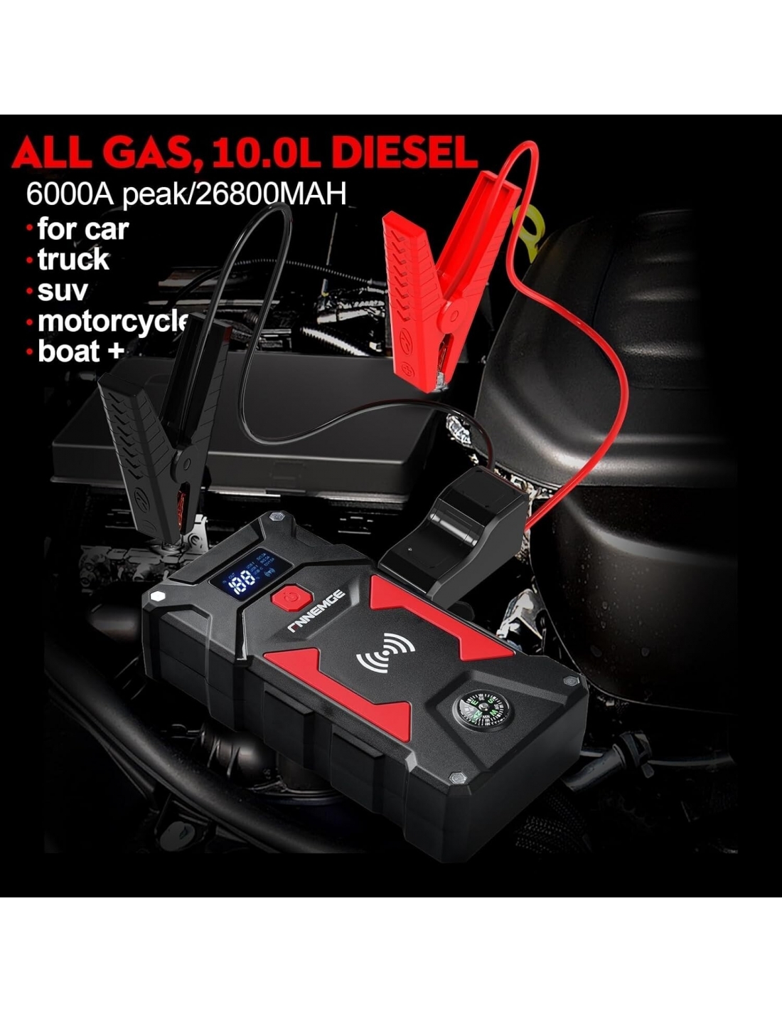 FNNEMGE Avviatore Batteria Auto Emergenza USB 6000A 26800mAh (Adatto a Tutti i Veicoli a Benzina o 10,0L Diesel) Luce LED Adattatore di uscita EC-5.