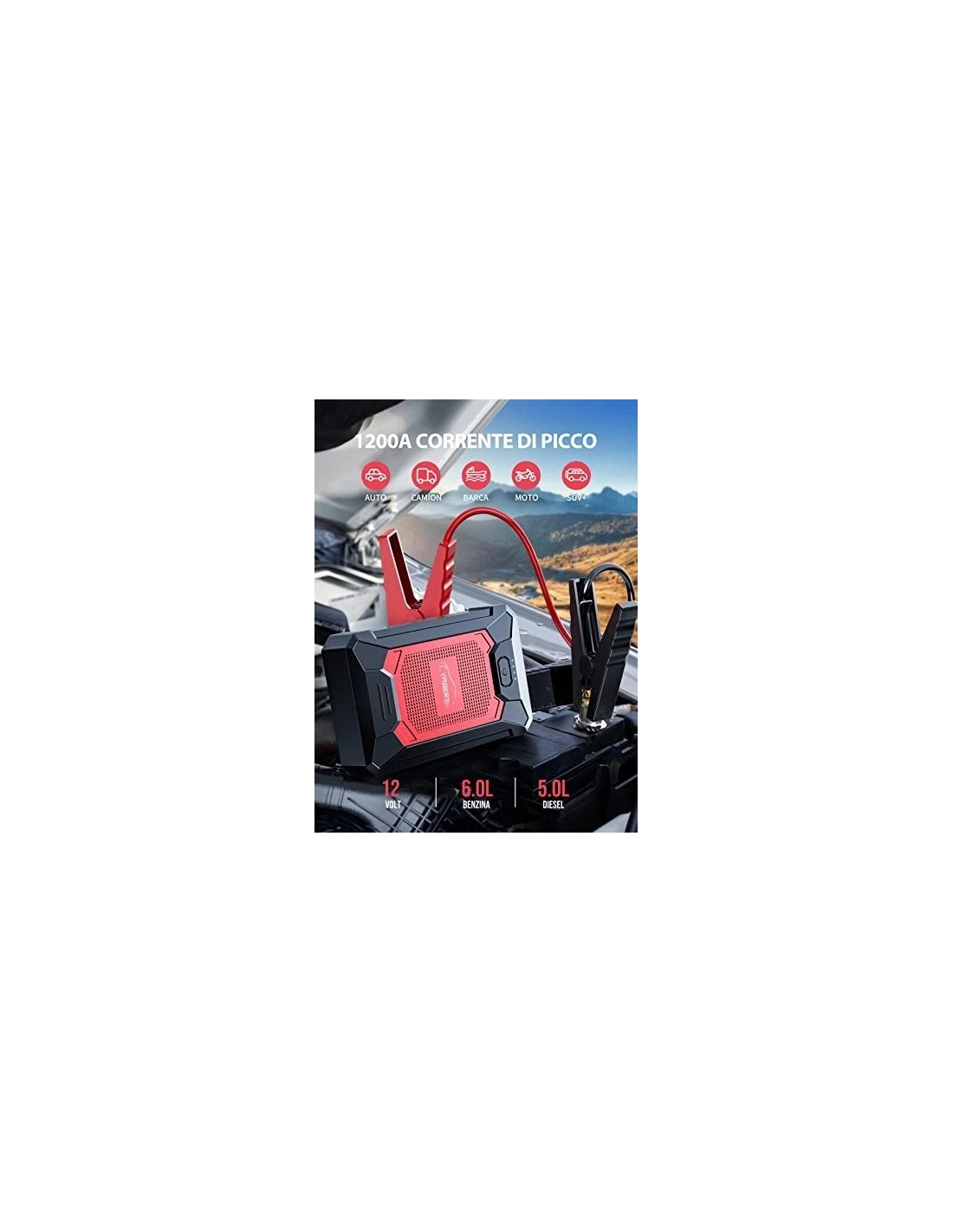- 🚗【1200A AVVIATORE AUTO BATTERIA】YABER YR200 starter batteria auto avviare veicoli a 12V (adatto per motori fino a 6,0L benzina / 5,0L diesel) in pochi secondi. Adatto per la tua auto, camion, moto, barca, camper o trattore e così via.