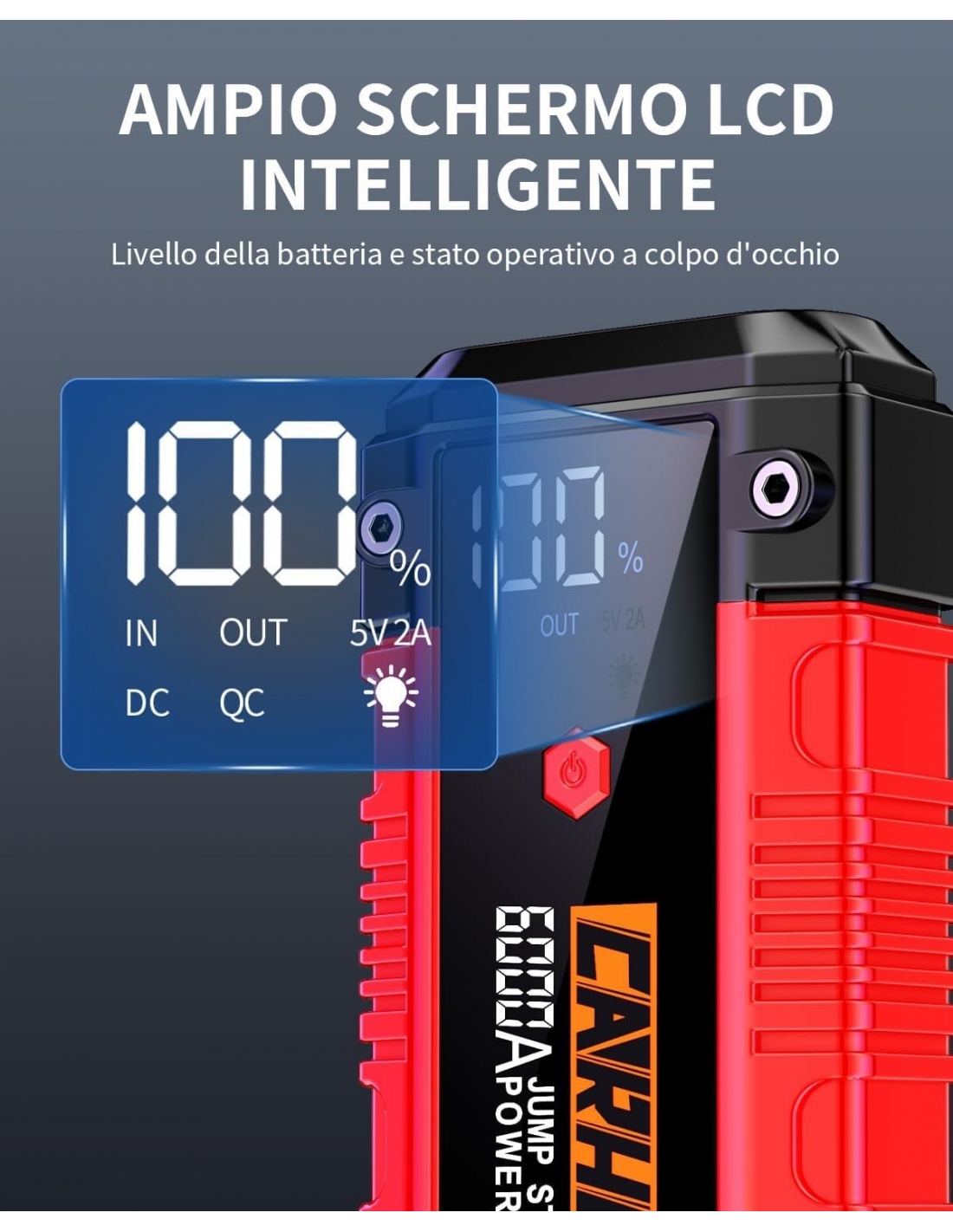 - 【DESIGN ALL'AVANGUARDIA】CARHEV Avviatore con schermo intelligente LCD per una chiara visione dello stato di utilizzo dell'avviatore e della carica residua, è abbastanza compatto da poter essere riposto nel vano portaoggetti, La durata e l'affidabilità sono fondamentali per i CARHEV. Il materiale del guscio con grado di protezione IP65 impedisce all'acqua piovana, alla polvere e agli urti esterni di danneggiare la struttura interna, adattandosi a molti tipi di scenari di lavoro complessi.