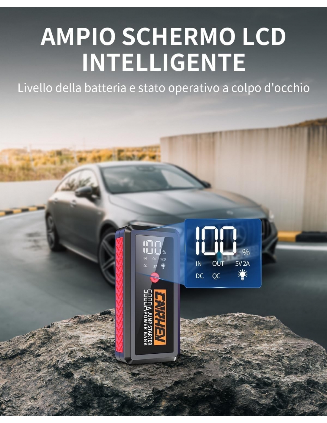 - 【DESIGN ALL'AVANGUARDIA】CARHEV Avviatore con schermo intelligente LCD per una chiara visione dello stato di utilizzo dell'avviatore e della carica residua, è abbastanza compatto da poter essere riposto nel vano portaoggetti, La durata e l'affidabilità sono fondamentali per i CARHEV. Il materiale del guscio con grado di protezione IP65 impedisce all'acqua piovana, alla polvere e agli urti esterni di danneggiare la struttura interna, adattandosi a molti tipi di scenari di lavoro complessi.