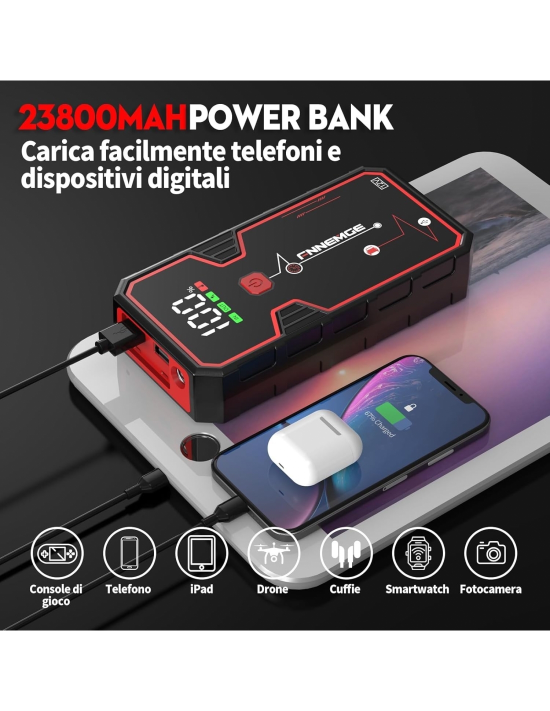 FNNEMGE FG608 Avviatore Batteria Auto, 5000A 23800mAh Avviatore Emergenza