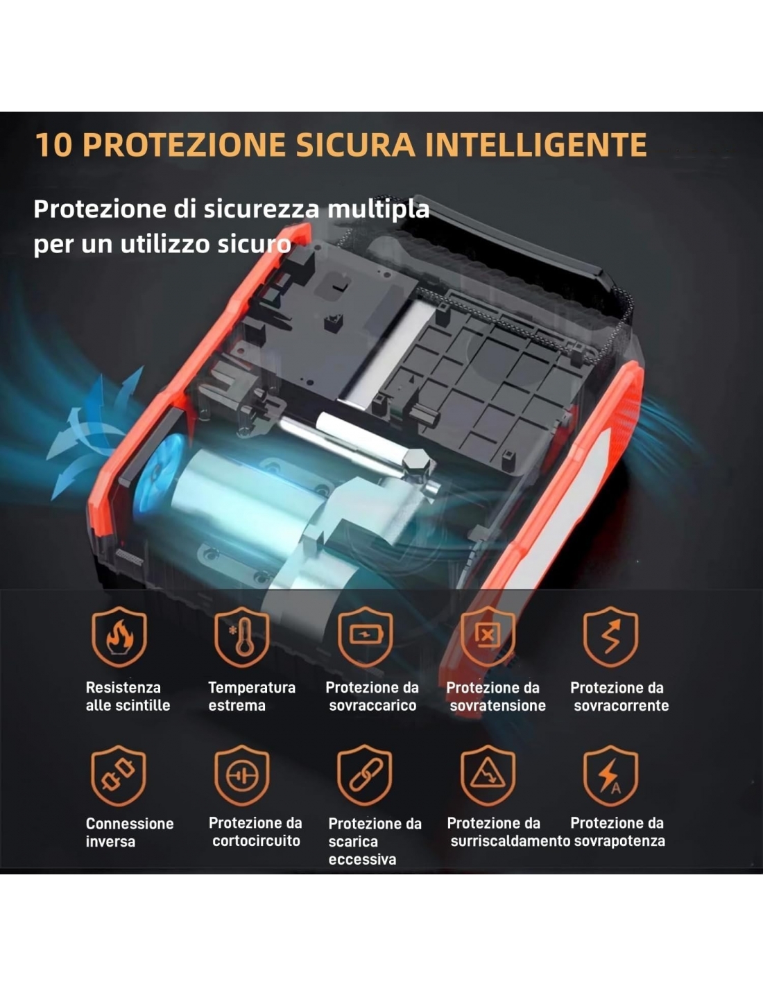 - 🚗 【Sistema di protezione intelligente】 Lo starter auto di salto è dotato di terminali intelligenti che forniscono protezione da inversione di polarità, protezione da sovracorrente, protezione da sovraccarico, protezione da sovraccarico, anti-back-charge, protezione da cortocircuito, protezione anti-reverse. Rumori gocciolanti e segnali di avvertimento lampeggiano quando viene richiesto per la risoluzione dei problemi, in modo sicuro e affidabile.