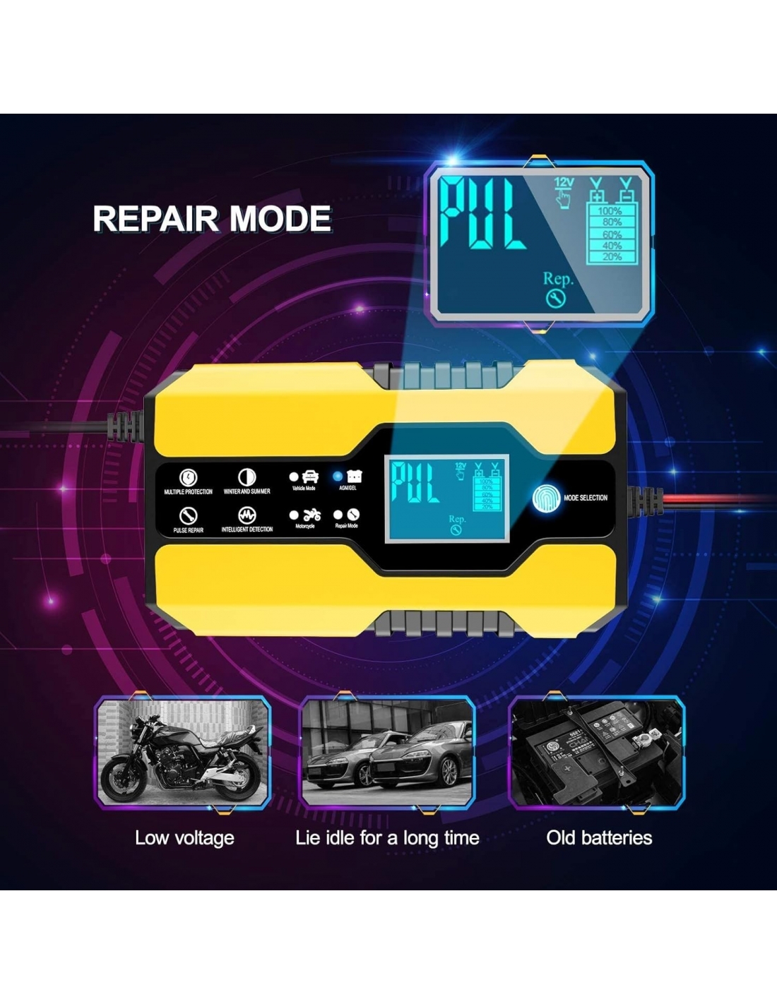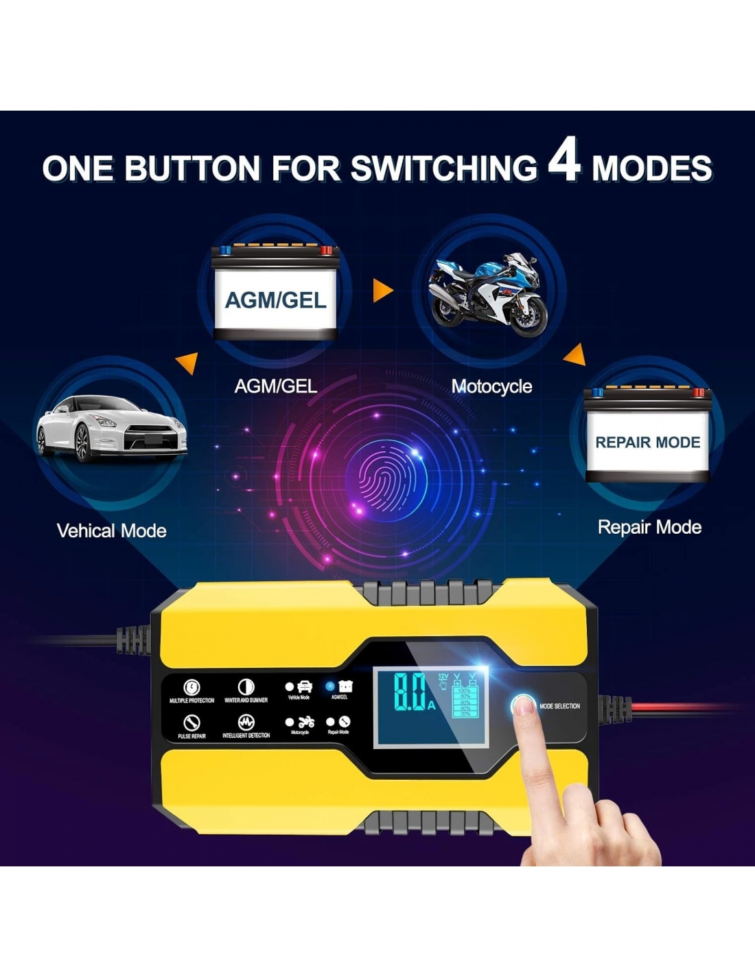 - 🚚【12V 8Amp/24V 4Amp】Questo caricabatteria per auto rileverà automaticamente le batterie (12V o 24V). Basta selezionare una modalità in base al tipo di batteria e caricherà completamente la batteria. Modalità AUTO/CAMION per la ricarica rapida di batterie di grandi dimensioni, modalità MOTO per batterie di piccole dimensioni, modalità AGM per batterie AGM e al calcio, modalità RIPARAZIONE per riparare vecchie batterie.