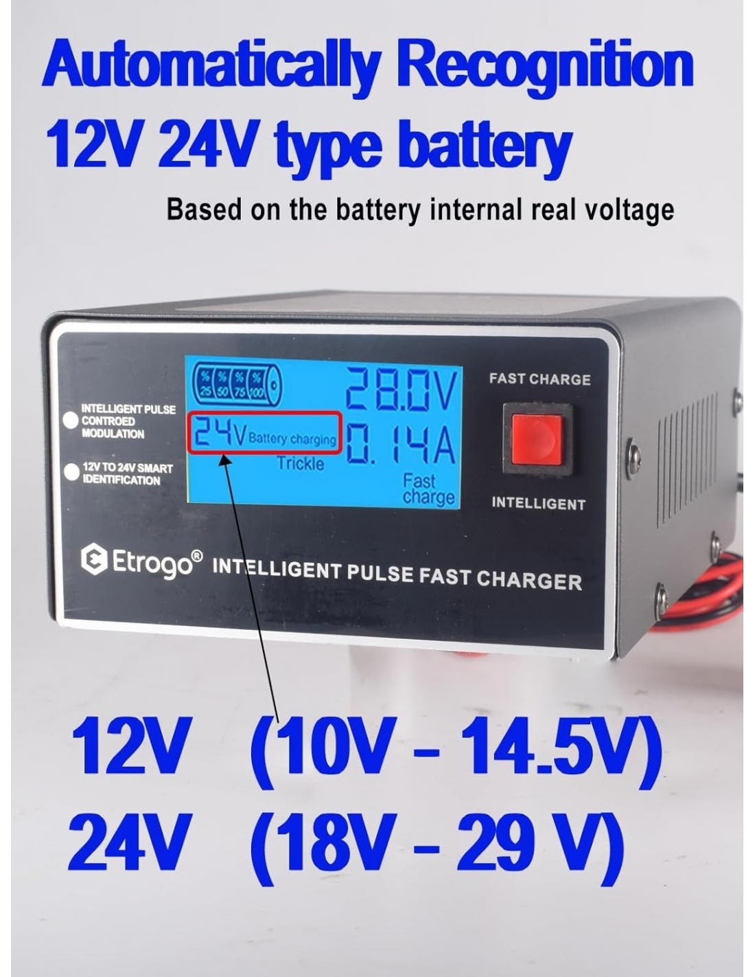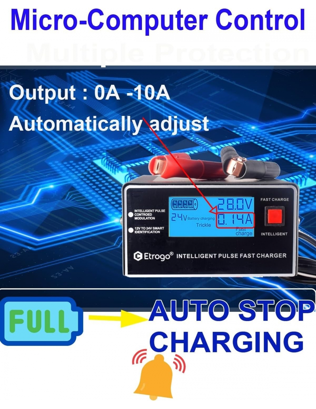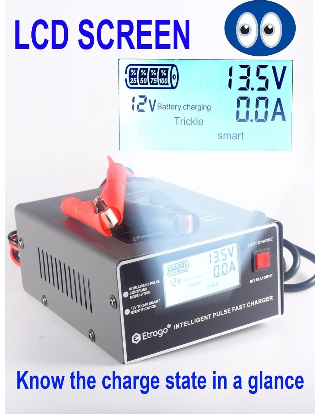 Etrogo Caricabatteria Auto 12V 24V 10A 250W Caricatore di Impulsi Intelligente
