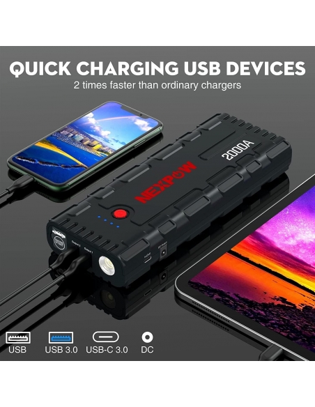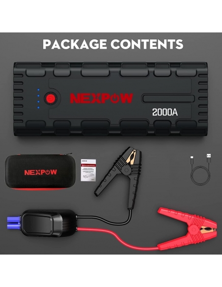 - 【4000A BOOSTER AVVIAMENTO AUTO】NEXPOW avviatore batteria auto con corrente massima di 2000A. Avvia il vostro veicolo a 12v in pochi secondi (7,0 litri di benzina o 5.5 litri di diesel). Ideale per auto, camion, moto, imbarcazioni, camper e trattori. Funziona in sicurezza anche in condizioni estreme (-20℃ ~ +60℃).