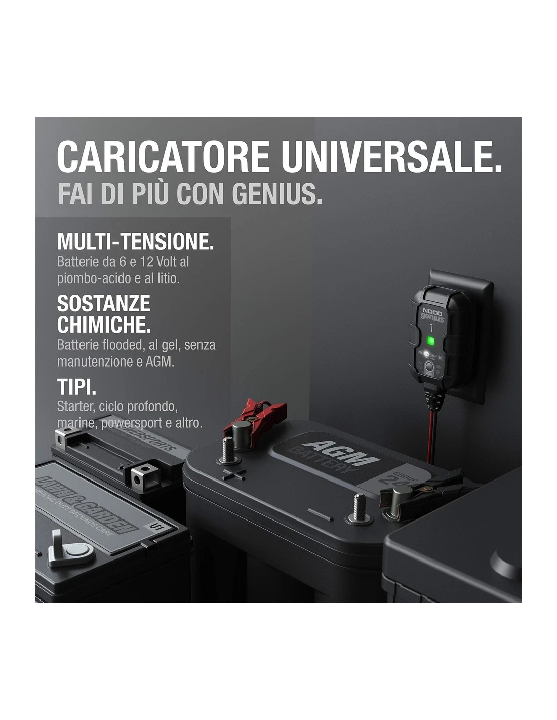 - FAI DI PIÙ CON GENIUS — Progettato per batterie al piombo da 6V e 12V (AGM, Gel, SLA, VRLA) e al litio (LiFePO4), incluse quelle a liquido, senza manutenzione, deep-cycle, marine e per sport motoristici.