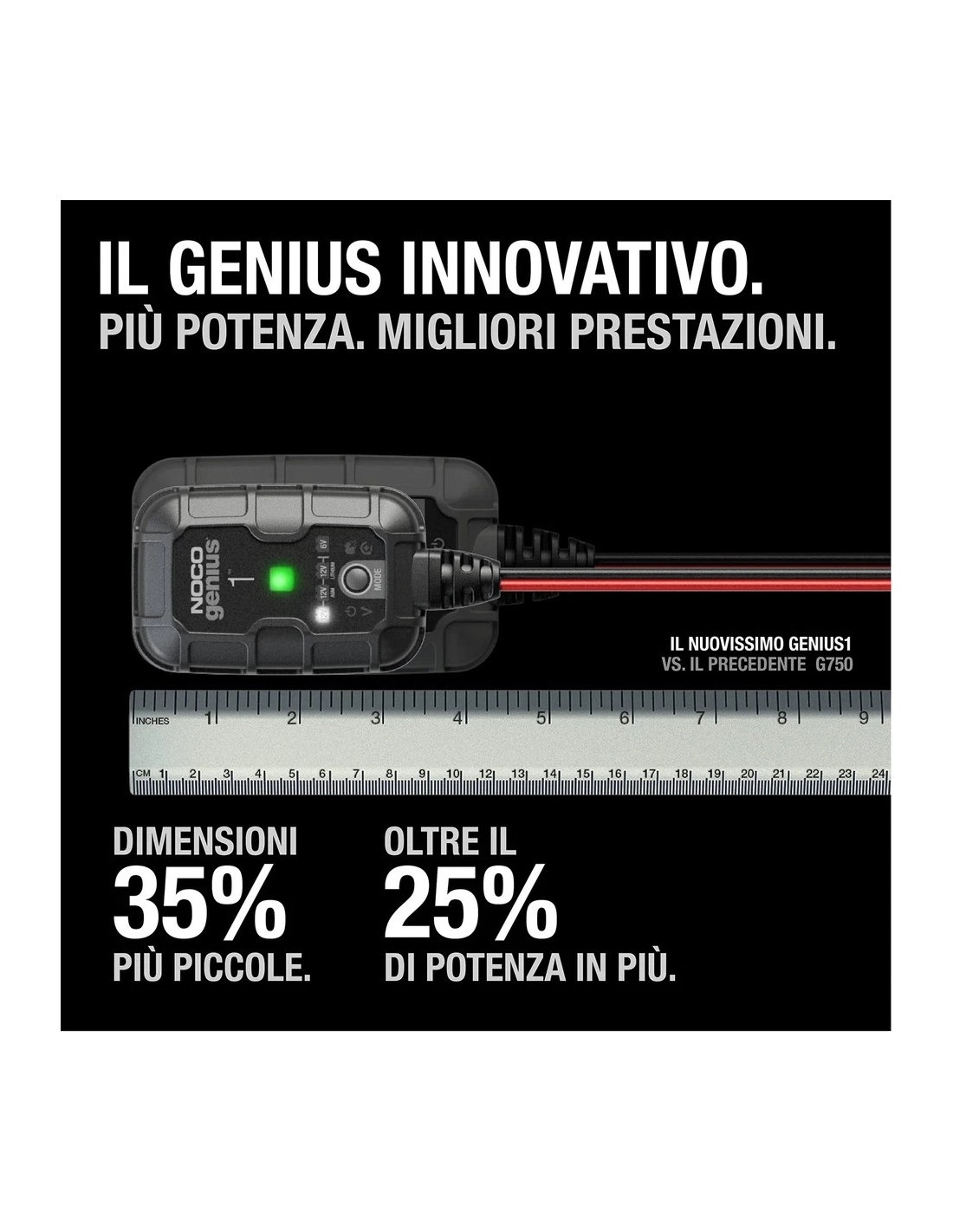 - SCOPRI IL GENIUS1EU — Simile al nostro G750EU, ma ancora migliore. È più piccolo del 35% e offre oltre il 35% di potenza in più. Una soluzione completa: caricabatterie, mantenitore, desolfatatore e mantenitore di carica.