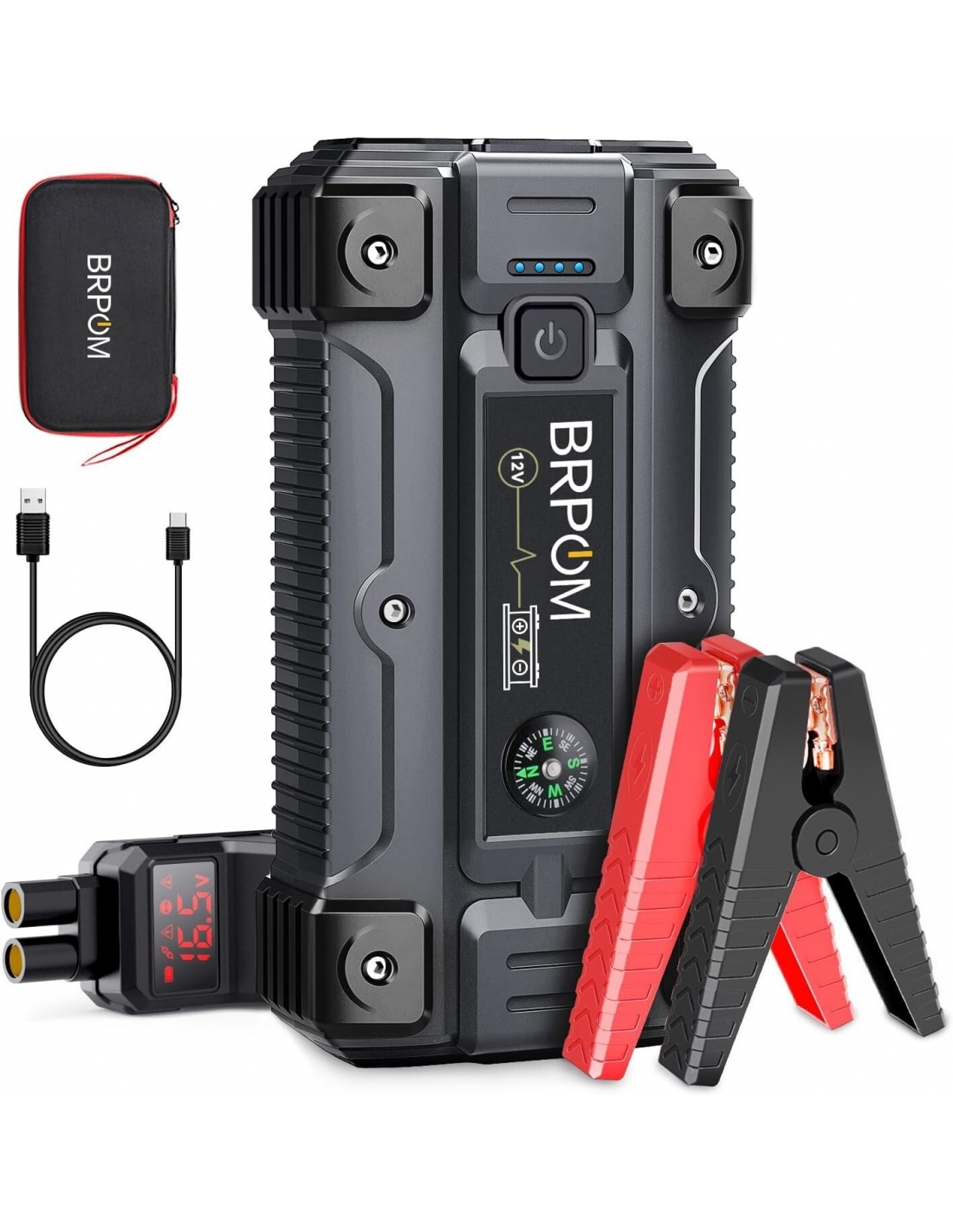 - Elenco delle confezioni: 1 x avviatore BRPOM, 1 x cavo jumper intelligente, 1 x cavo di ricarica di tipo C, 1 x manuale di istruzioni (lingua inglese non garantita), 1 x scatola di custodia. Si consiglia di leggere attentamente il manuale di istruzioni prima dell'uso per evitare un funzionamento errato. In caso di problemi con il prodotto, si prega di contattare l'assistenza tecnica.