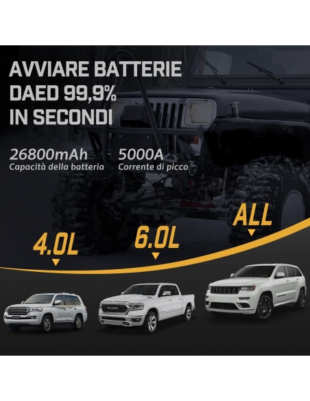 - 26800 mAh power bank: le numerose porte (tra cui una porta di ricarica QC3.0, più veloce del 75% rispetto all'uscita normale) del booster della batteria dell'auto sono adatte a computer portatili, telefoni e altri piccoli dispositivi che si possono caricare facilmente in viaggio.