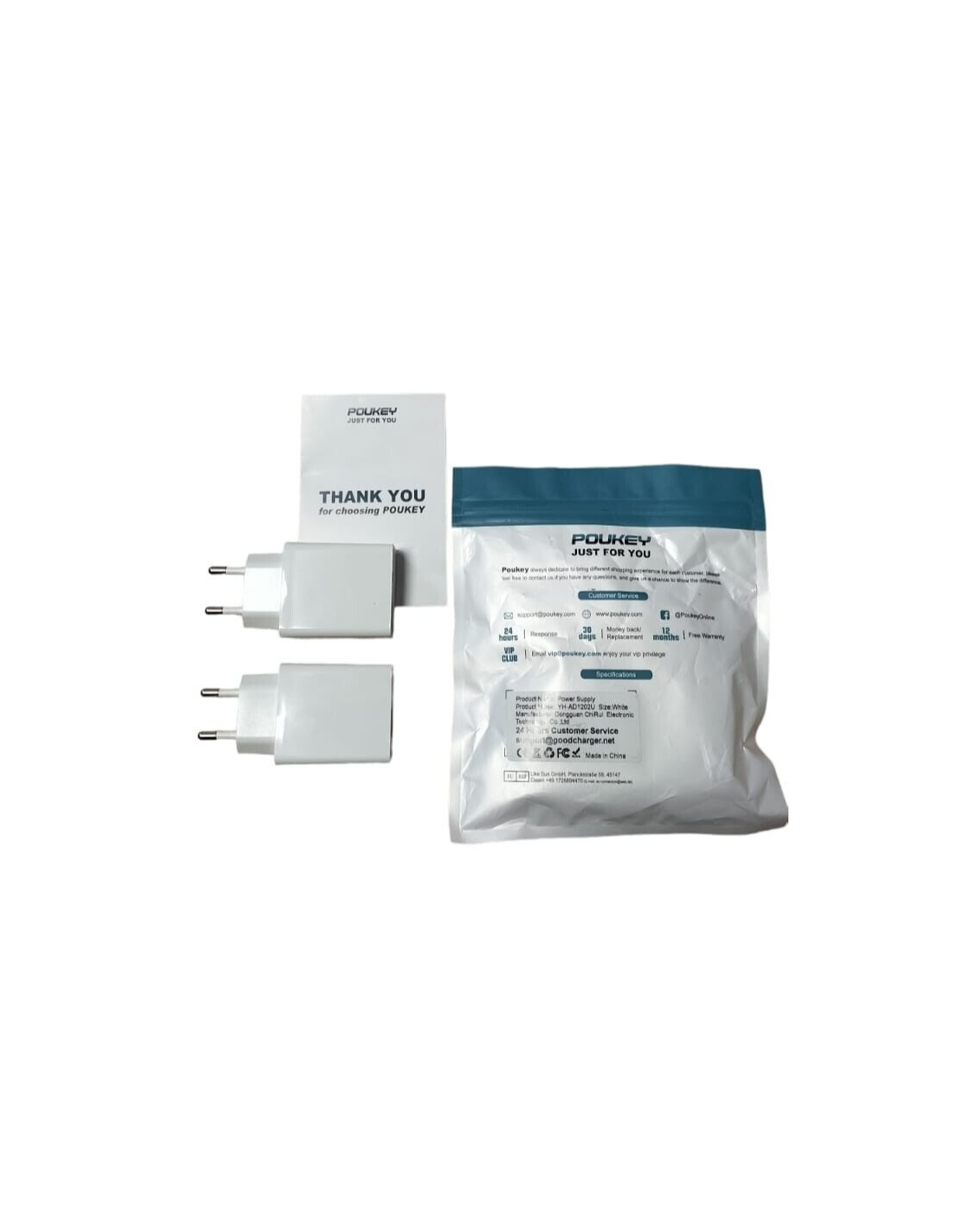 Poukey YH-AD1202U-EU Caricabatterie 2.4A 5V Bianco 2 Porte USB PZ.2