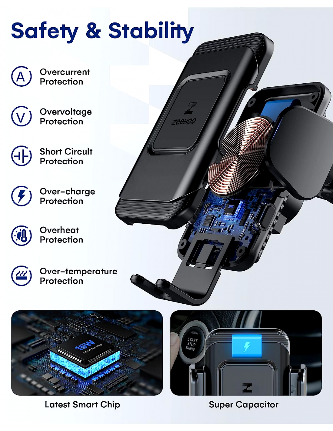 ZeeHoo Caricabatteria per auto wireless supporto con morsetto automatico