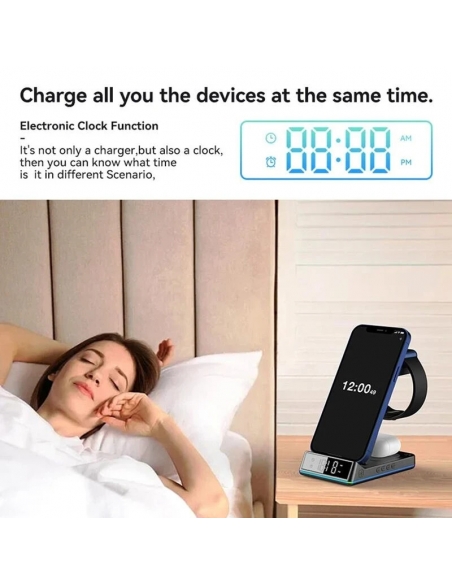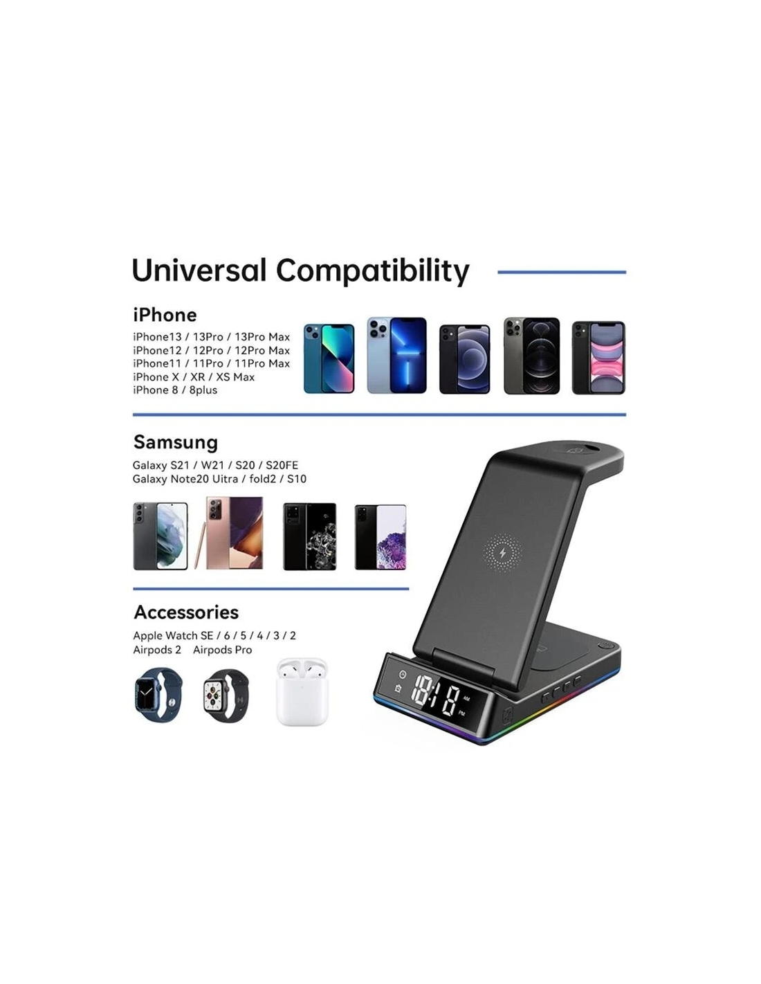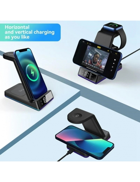 Z6 Caricabatteria Wireless Magnetico 5 in 1 Luminoso Orologio Telefono Cuffie
